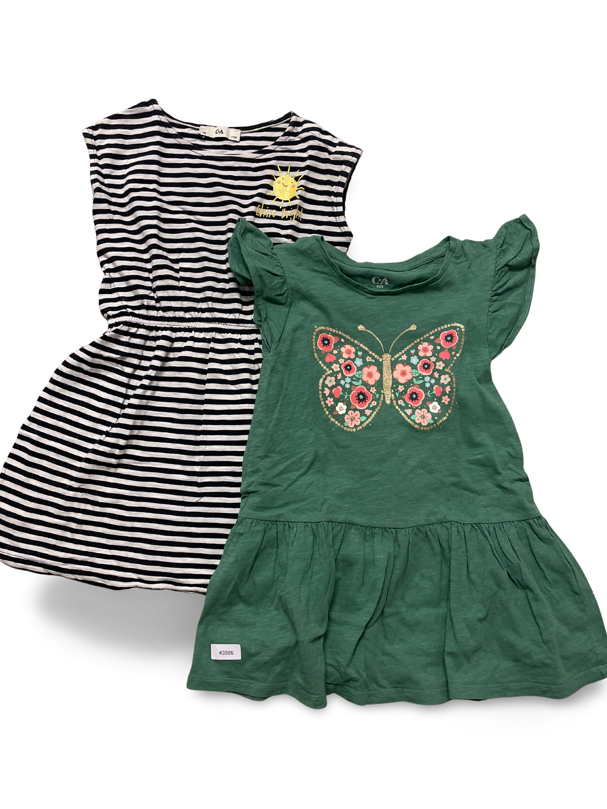 2er Bundle Kleider Gestreift und Grün mit Schmetterling - Gr. 122