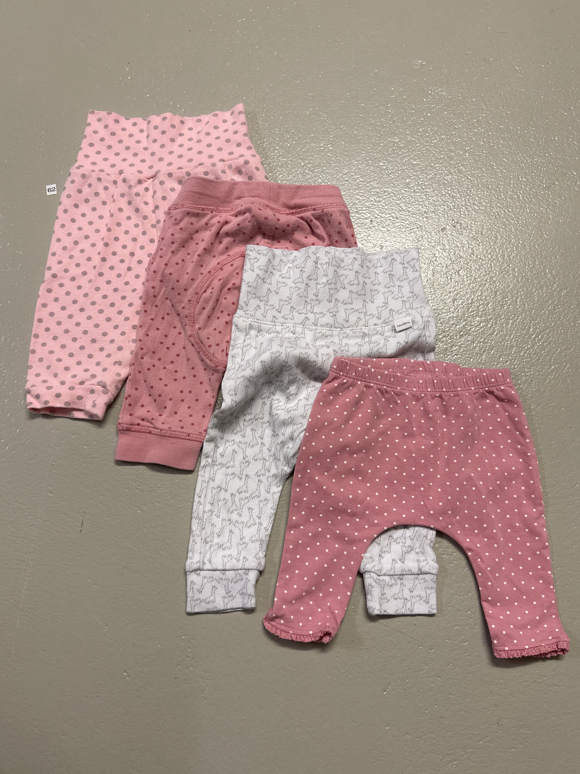 Zwei süsse Leggings in Rosa mit Punkten und einem niedlichen Muster.