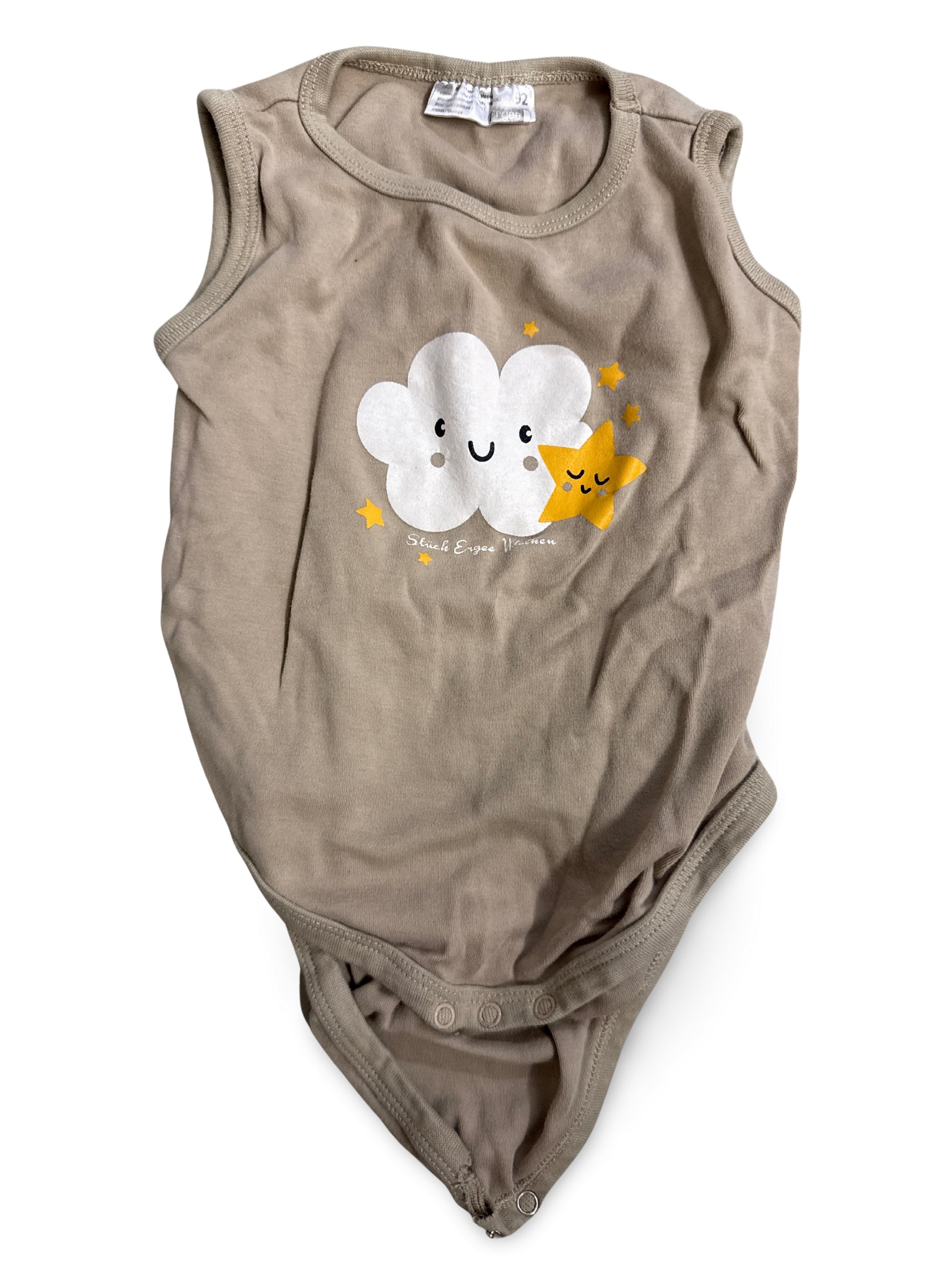Ärmelloser Baby-Body in neutralem Beige mit niedlichem Wolken- und Sternen-Print. Mit Druckknöpfen am Schritt für einfaches An- und Ausziehen und vielseitig kombinierbar.