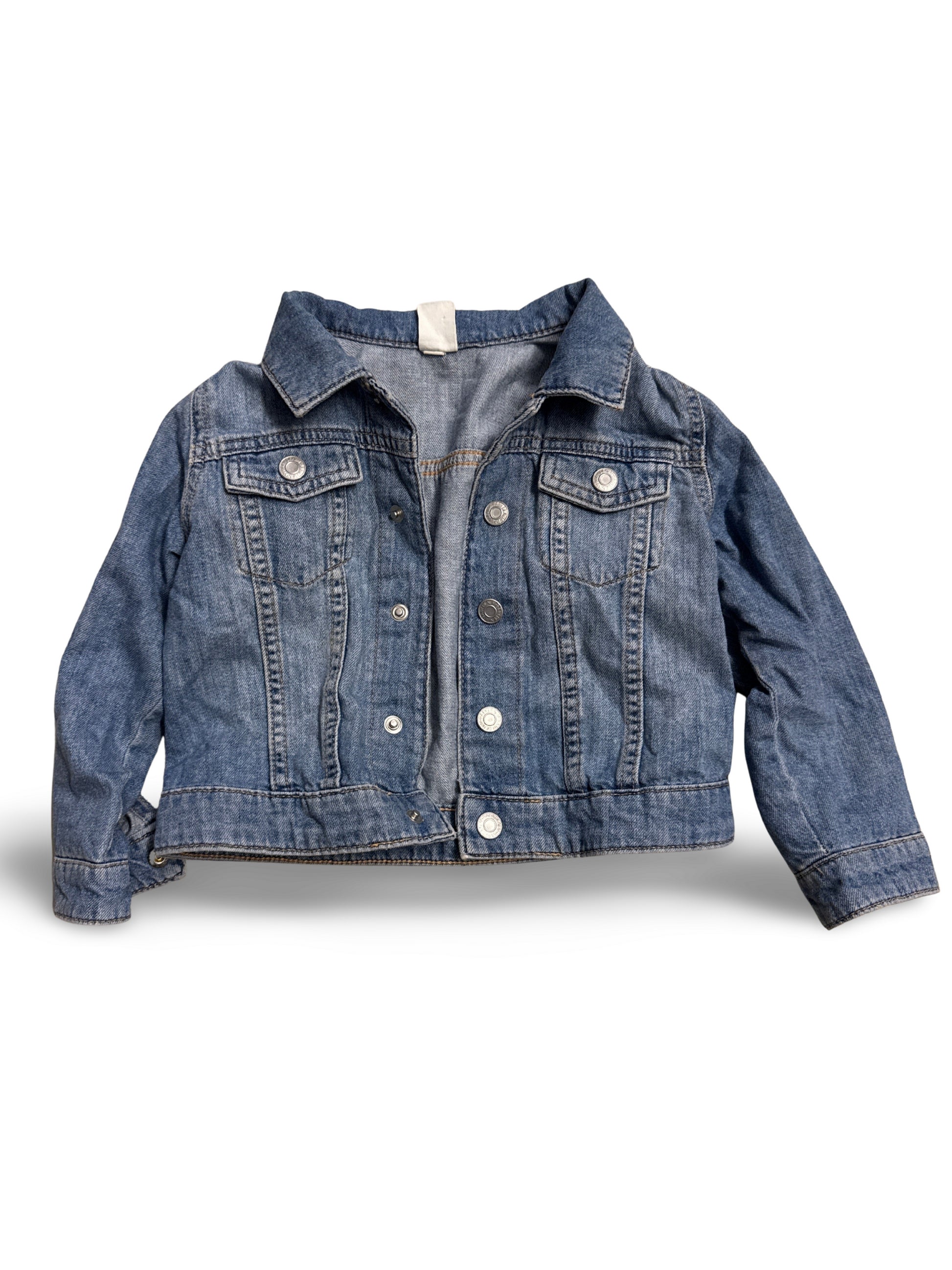 Klassische Jeansjacke im Denim-Look mit Knopfleiste und aufgesetzten Brusttaschen. Lässig und vielseitig, ideal zum Kombinieren mit Kleidern, Chinos oder Jeans. Schlichtes Design mit betonten Nähten für einen zeitlosen, urbanen Style.