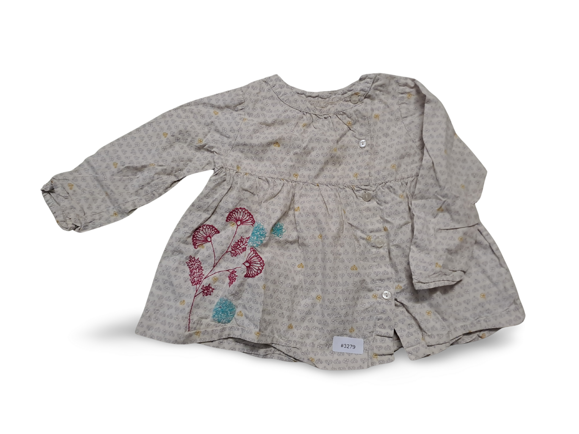 Long-sleeved dress with floral embroidery - size 86