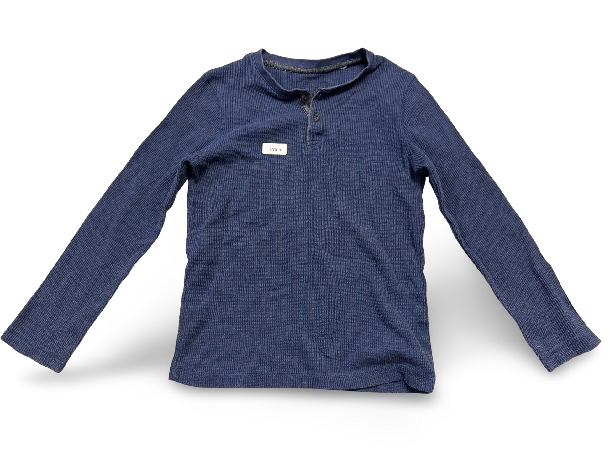 A soft, comfortable long-sleeved shirt in a calming blue with a classic Henley collar and fine ribbed texture, harmoniously combining comfort and timeless style.