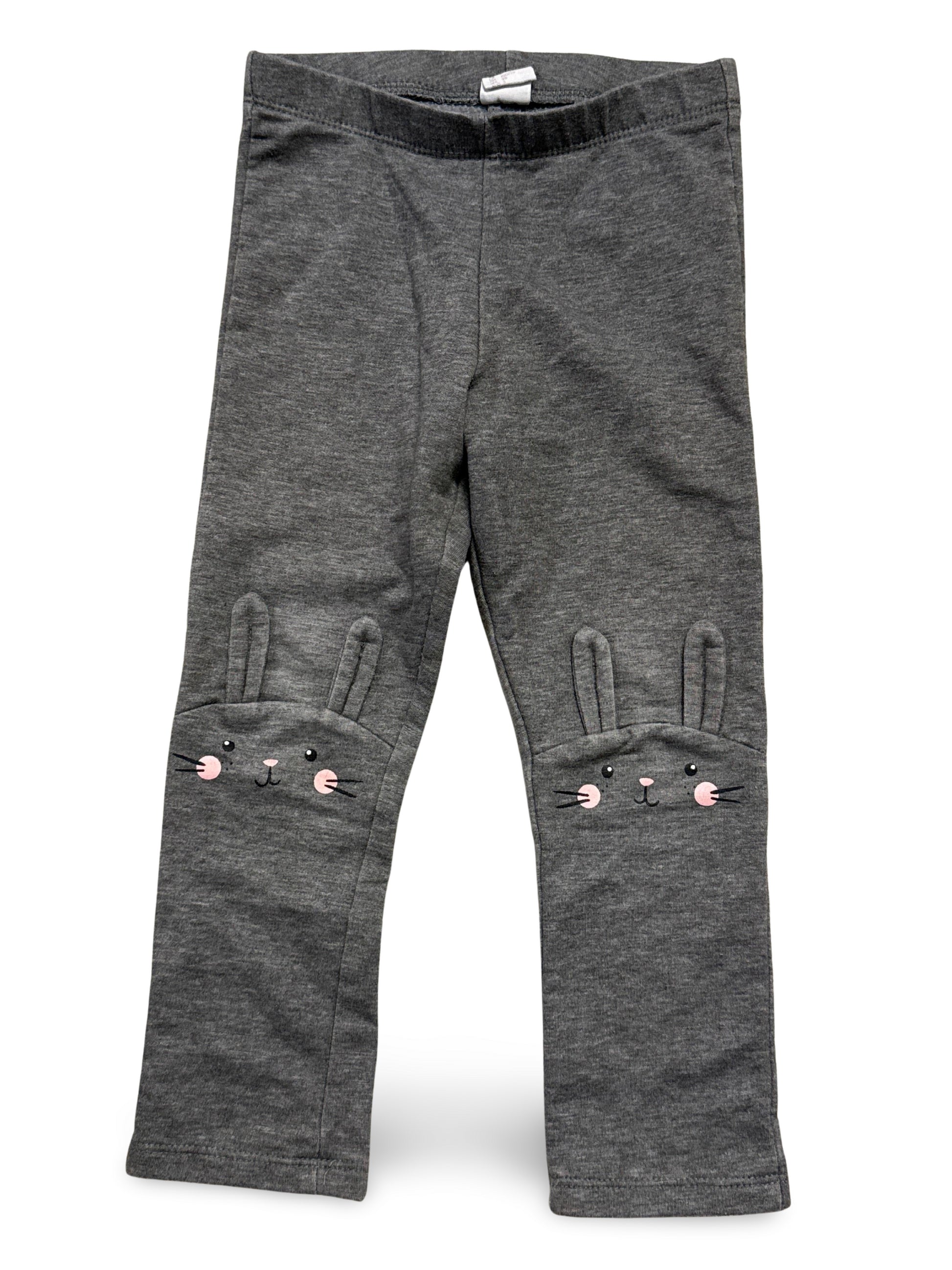 Bequeme graue Leggings mit niedlichem Hasenmotiv an den Knien.