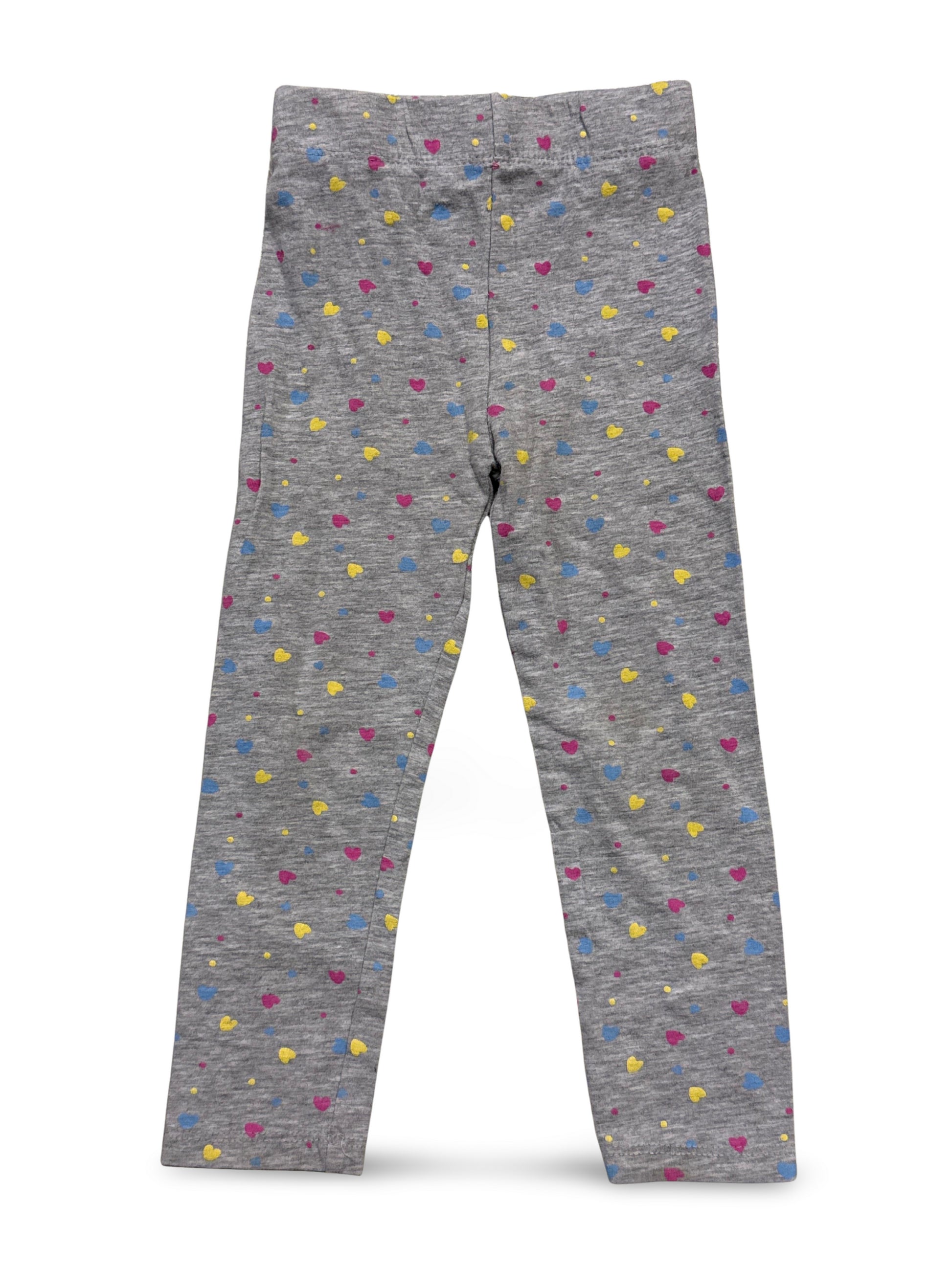 Bequeme graue Leggings mit bunten Herzchen-Muster.