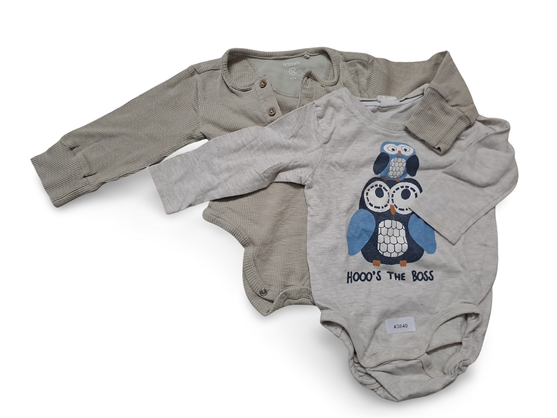 2er Bundle Strampler Langarm Eule und Uni - Gr. 74