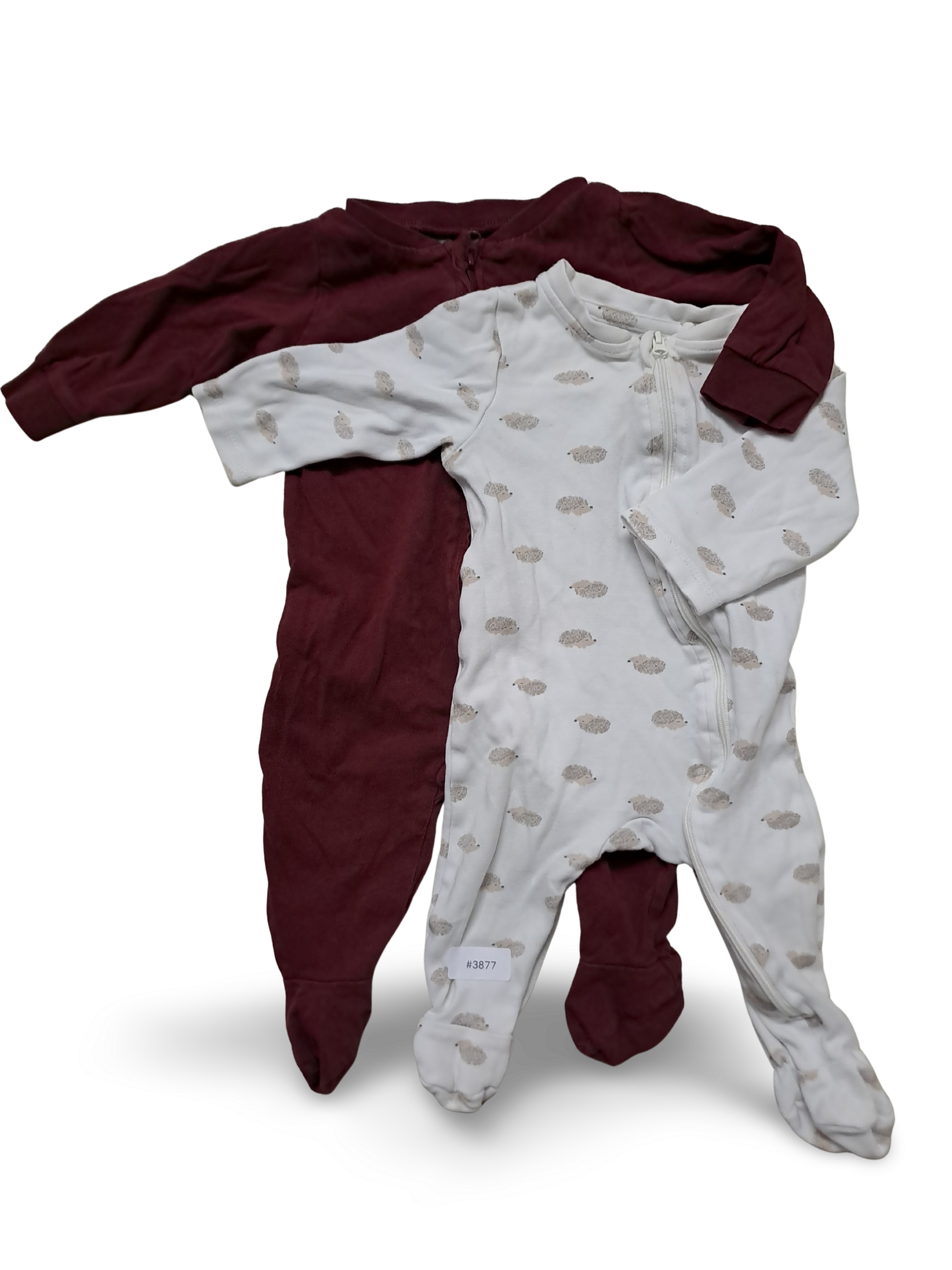 2er Bundle Strampler mit Füssen, Igelmuster und Uni - Gr. 62