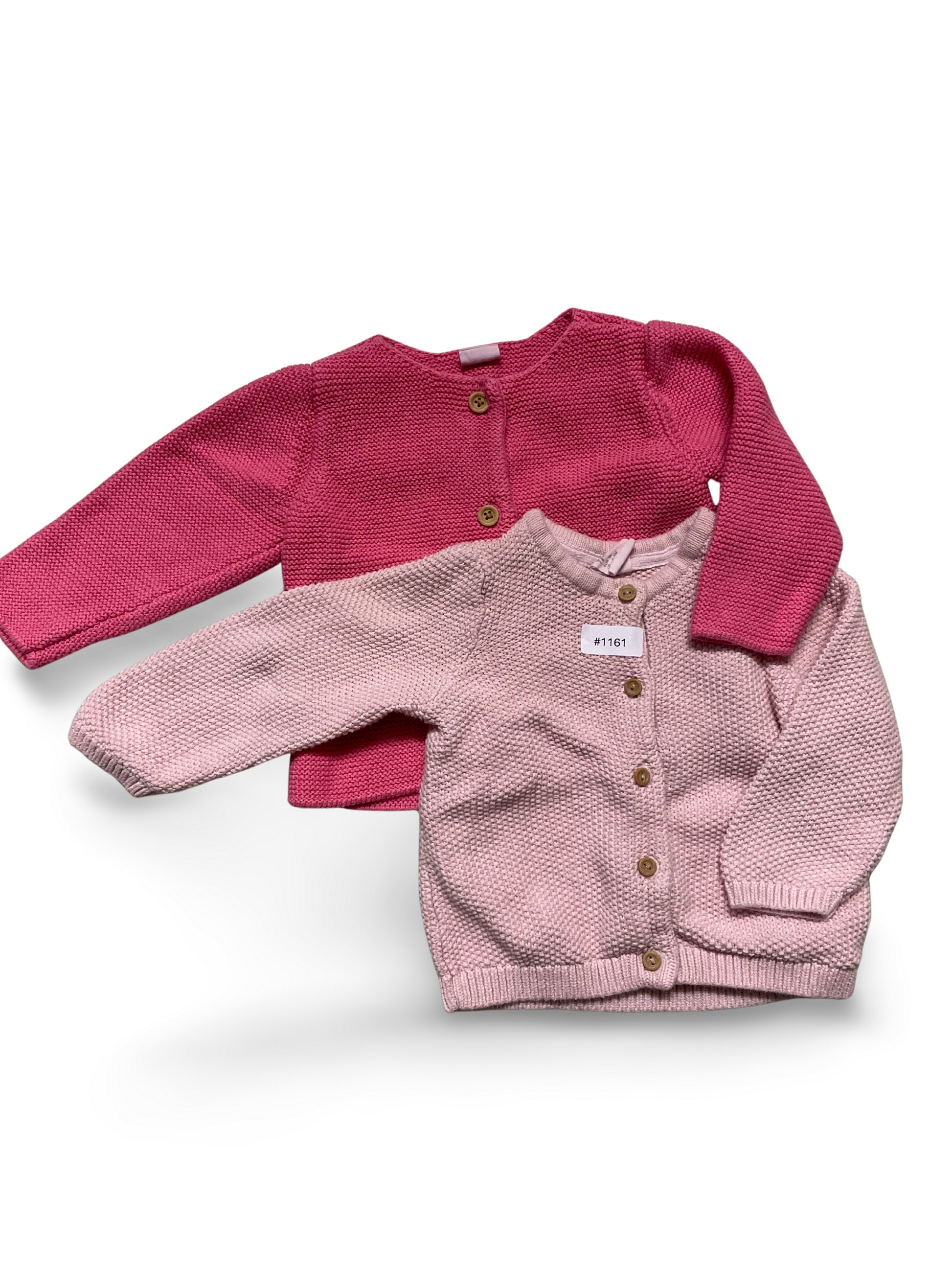 Zwei süsse Strickjacken in Rosa-Tönen mit Knöpfen.