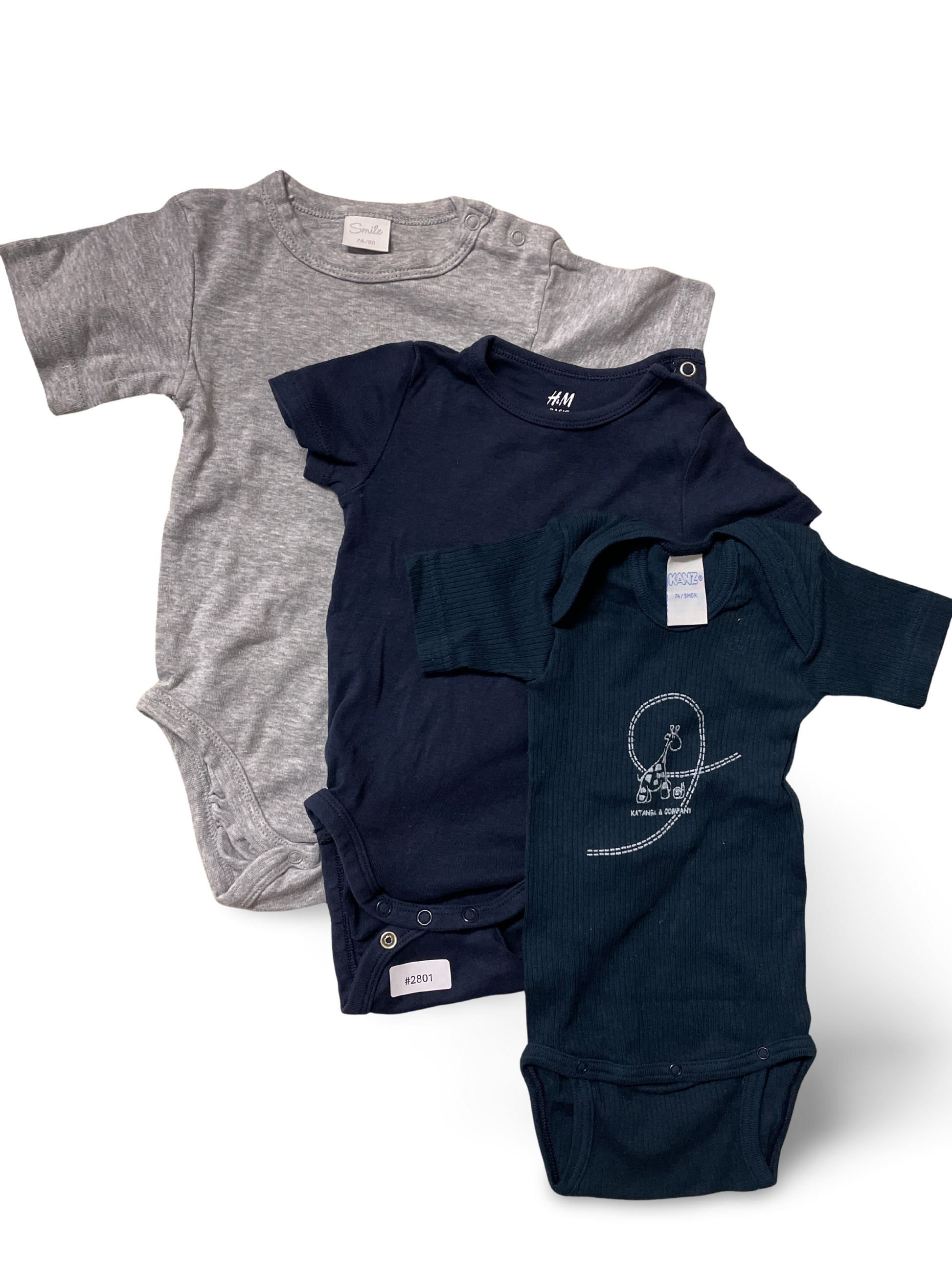 3er Bundle Strampler kurzarm blau grau petrol - Gr. 74
