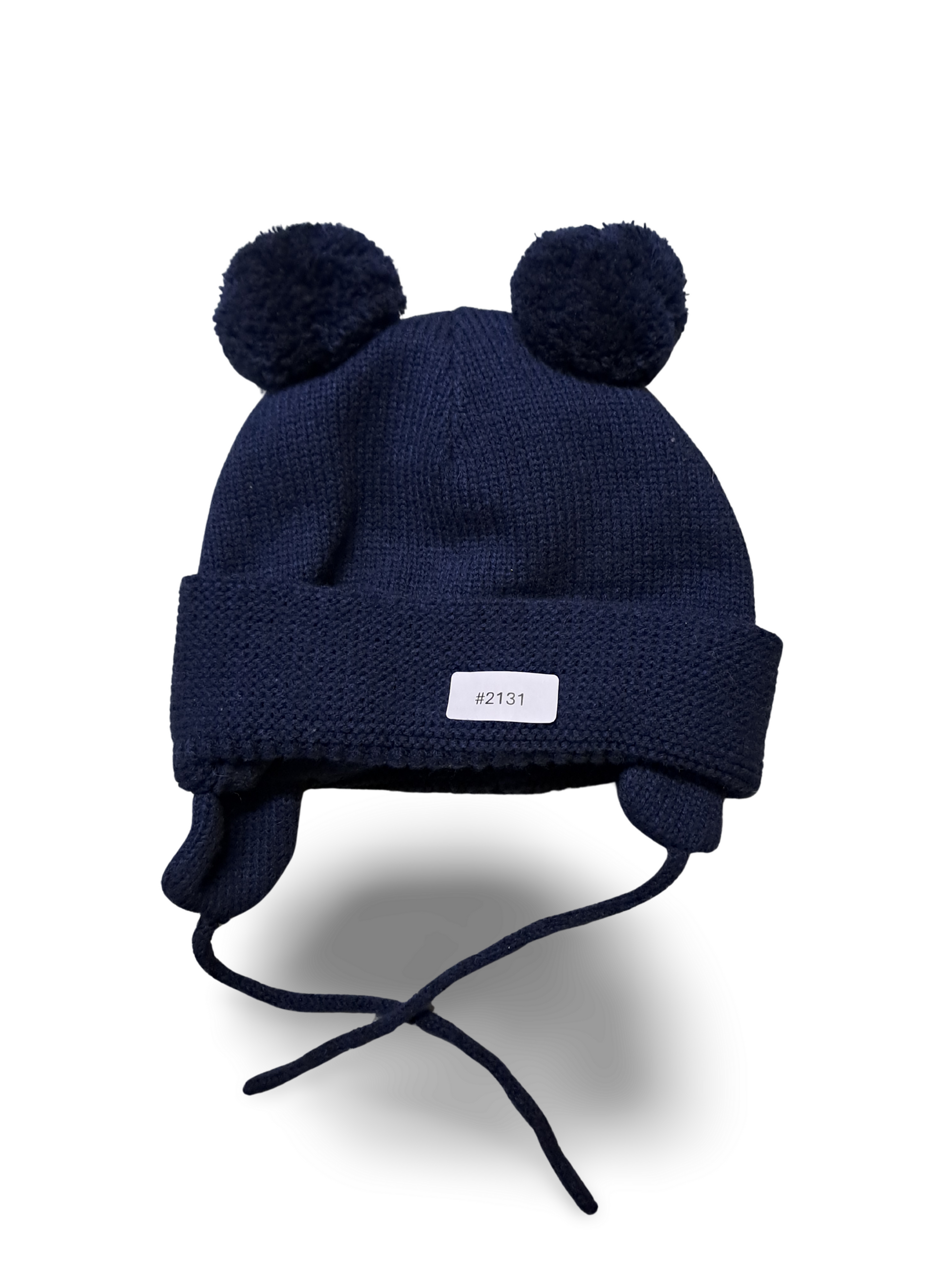 Mütze mit Ohrenklappen und Bommel - Gr. 86
