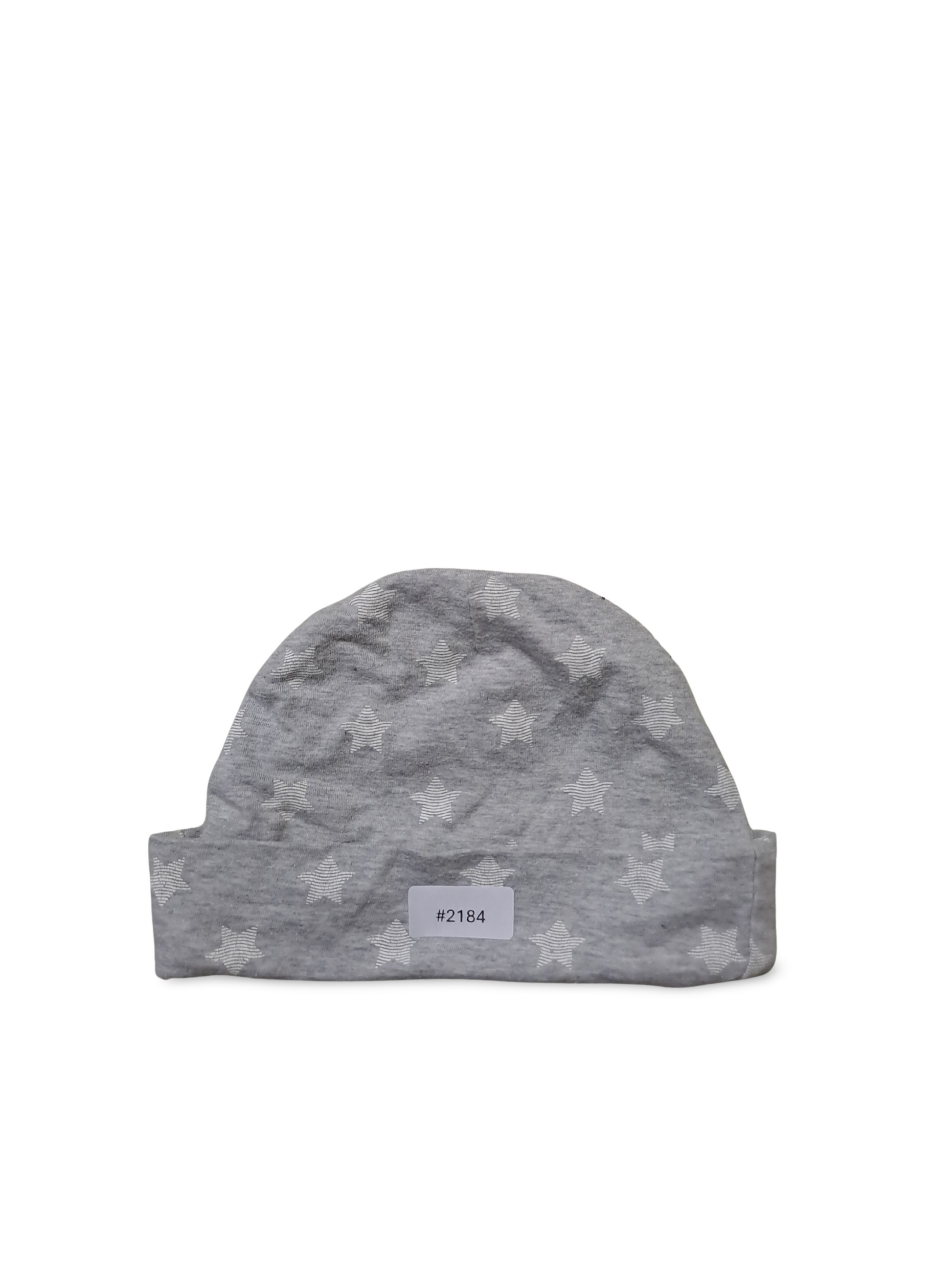 Zarte, anschmiegsame Mütze in sanftem Grau mit weissen Sternen. Das elastische Bündchen sorgt für einen komfortablen Sitz und angenehme Wärme, ideal für Spaziergänge und kuschelige Stunden.