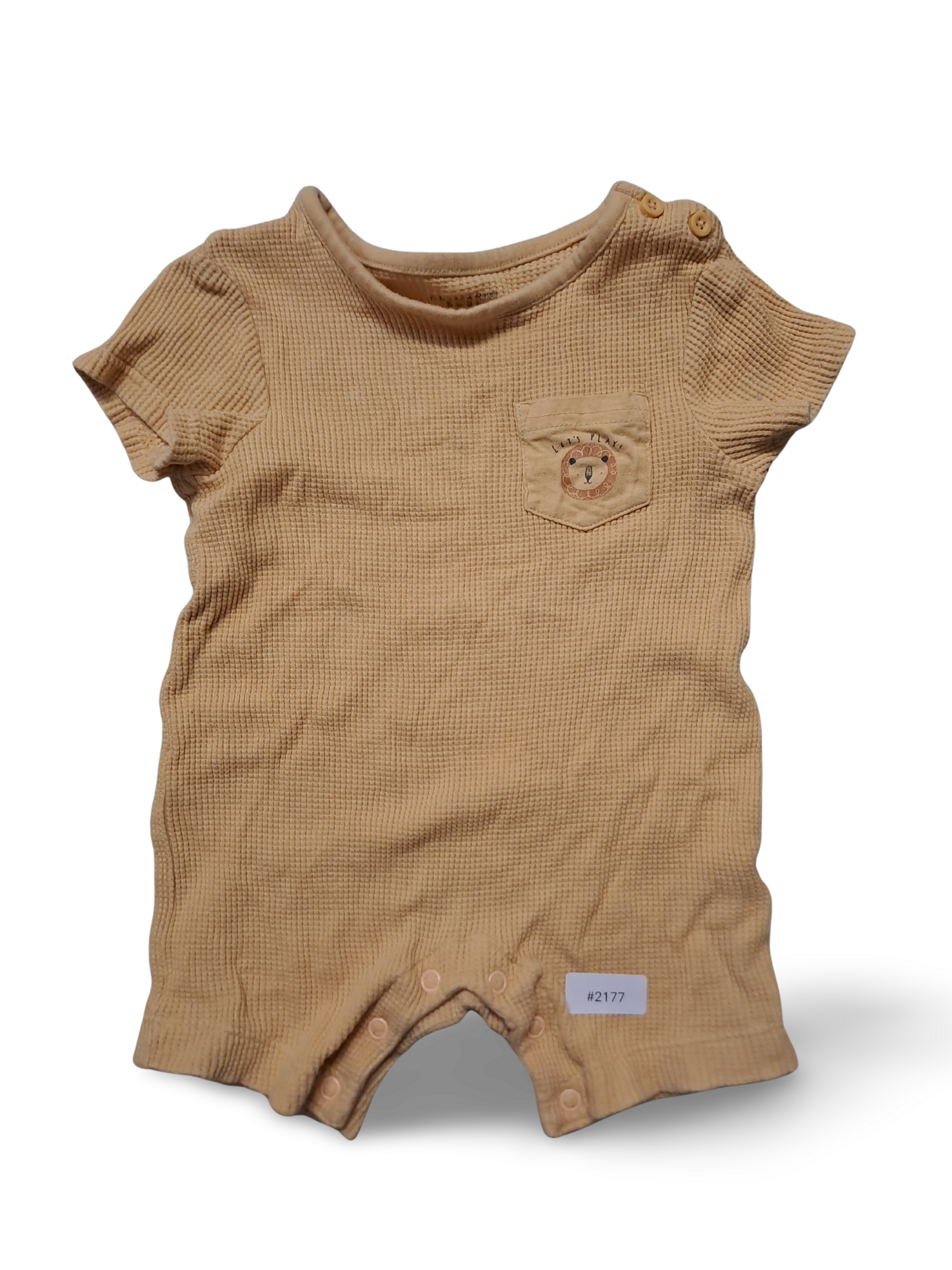 Beiger Strampler mit Waffelstruktur und Löwenmotiv - Gr. 74