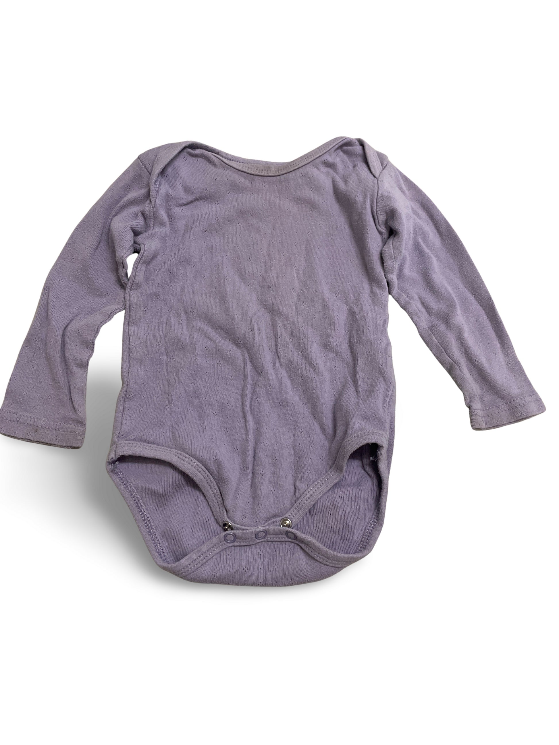 Unifarbiger Langarm-Body in zartem Flieder, ideal als Basisschicht oder zum Kombinieren. Mit praktischen Druckknöpfen im Schritt und angenehmem, weichem Material für hohen Tragekomfort.