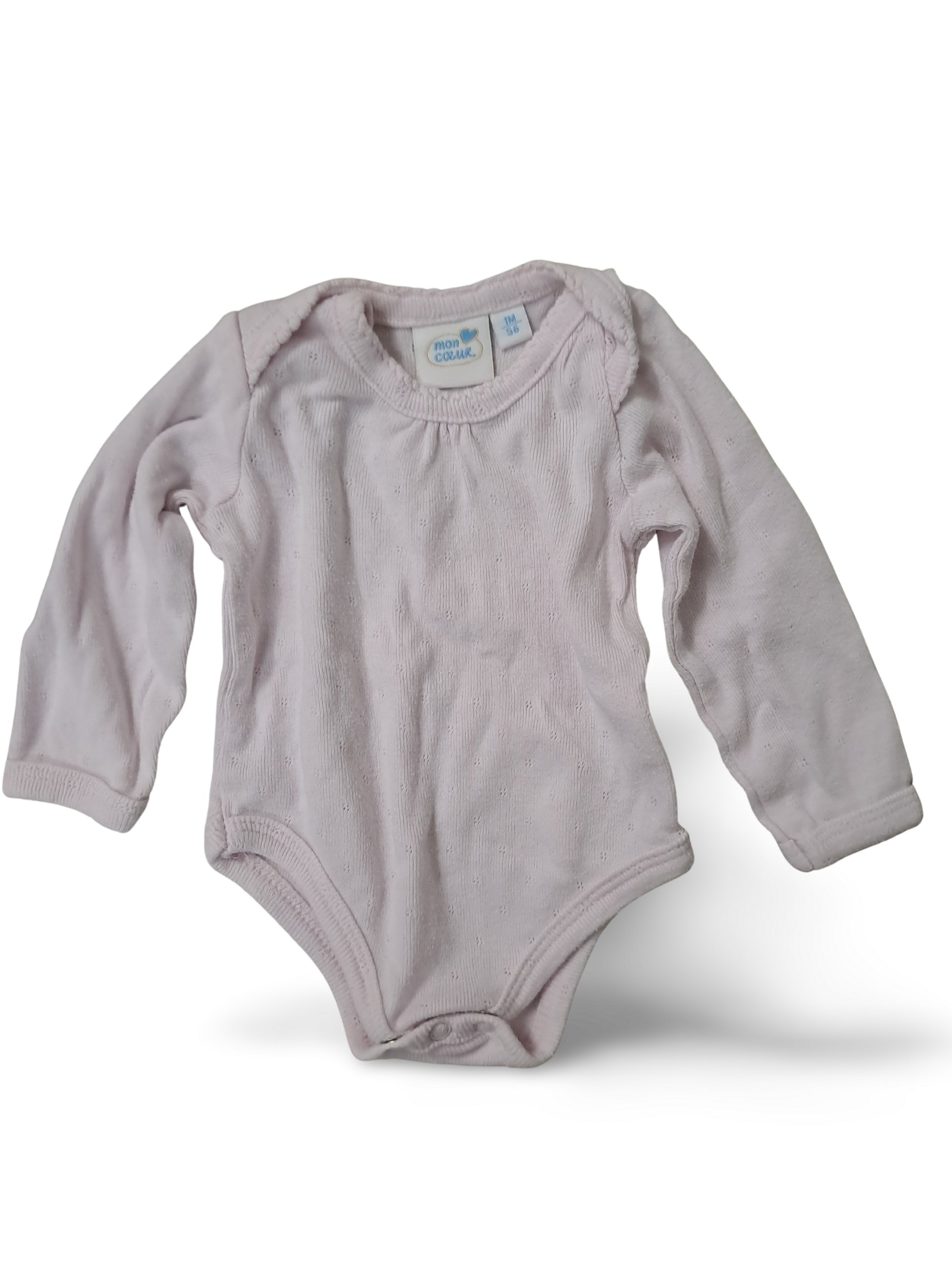 Langarm-Babybody in zartem Rosa mit rundem Halsausschnitt. Mit praktischen Druckknöpfen im Schritt und schlichter, vielseitiger Optik, ideal zum Kombinieren.