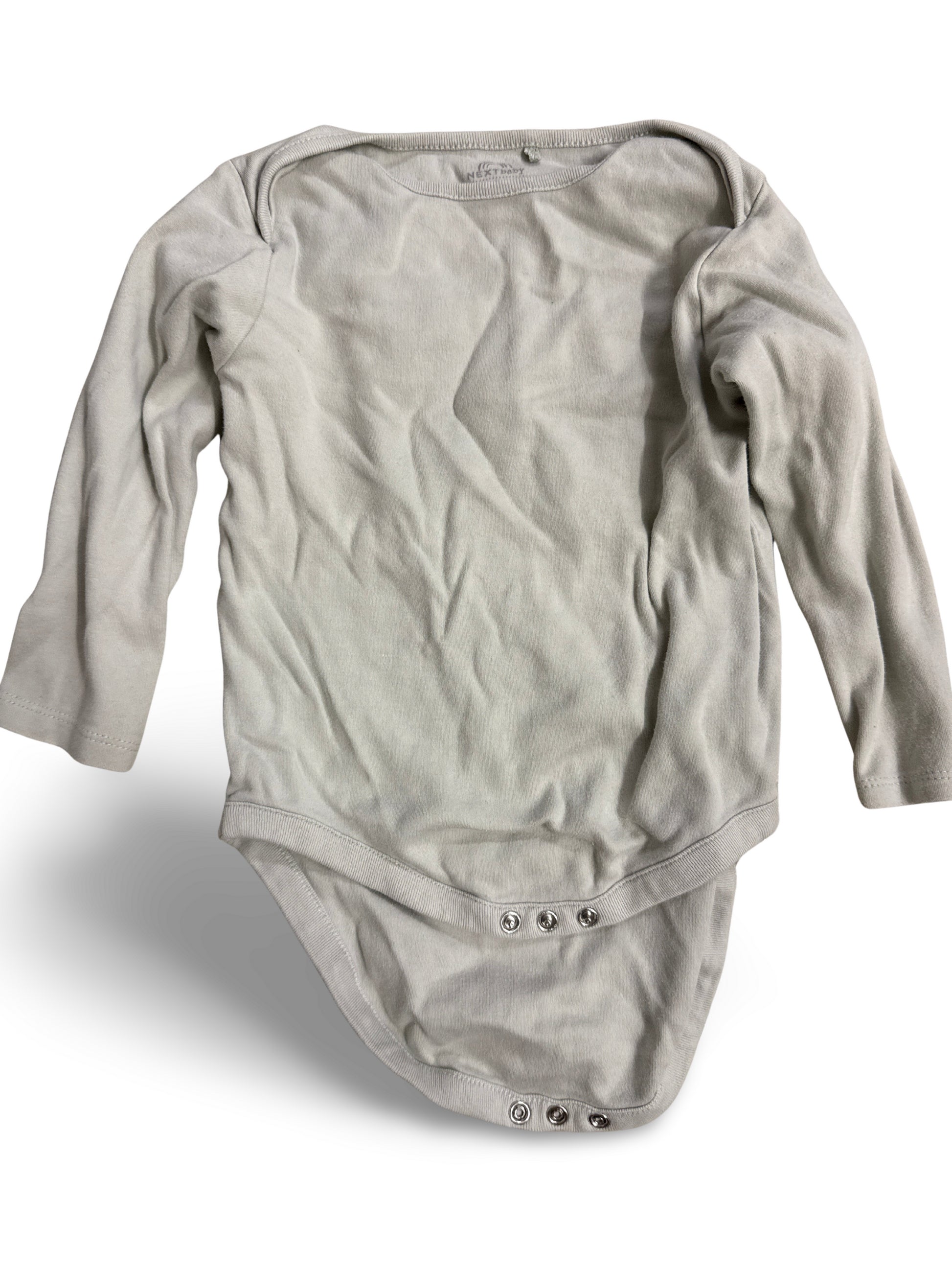 Schlichter Langarmbody in hellem Beige-Grau mit praktischen Druckknöpfen im Schritt. Neutraler Look und weicher Baumwoll-Jersey machen ihn zum vielseitigen Basic für den Alltag.