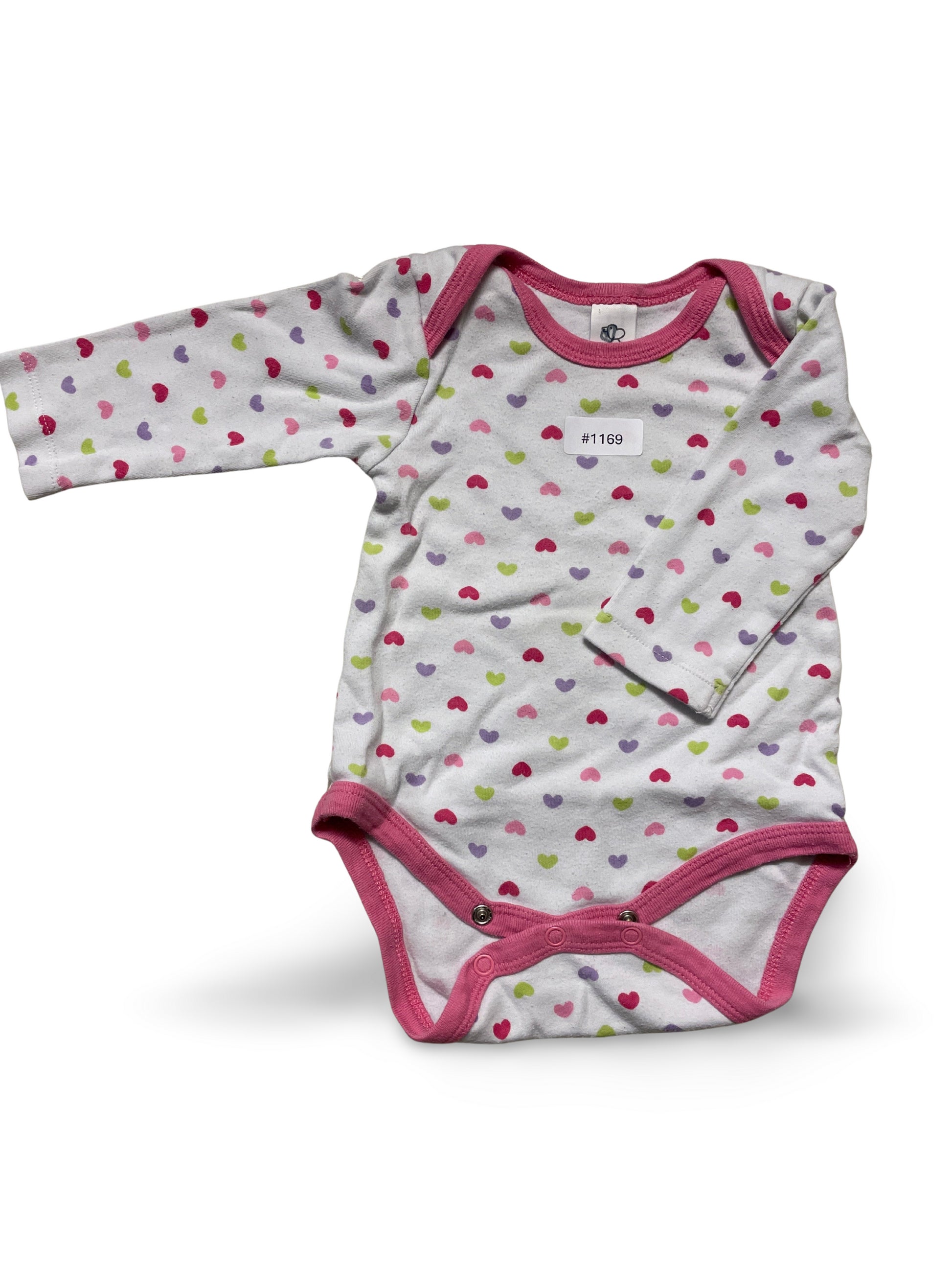 Ein süsser Body mit langen Ärmeln und bunten Herzchen-Muster.