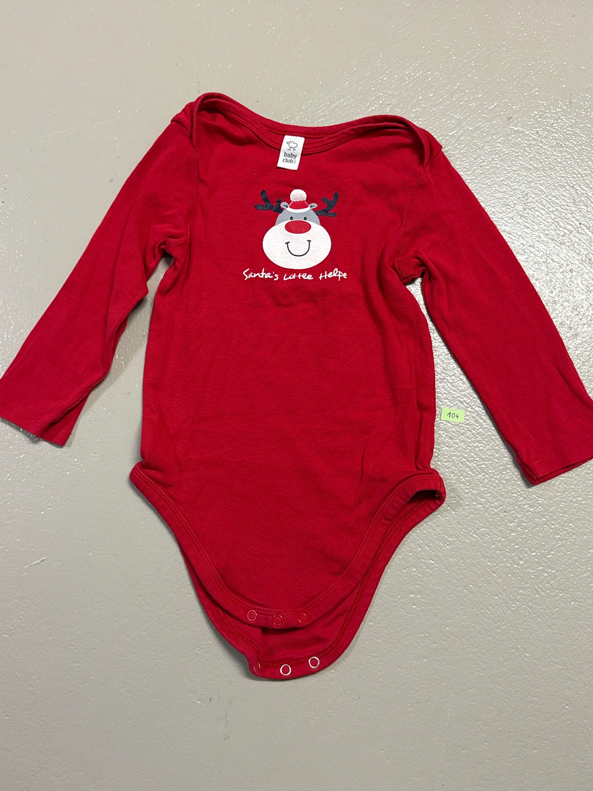Roter Body mit langem Arm und Weihnachtsmotiv. Ideal für die kalte Jahreszeit.