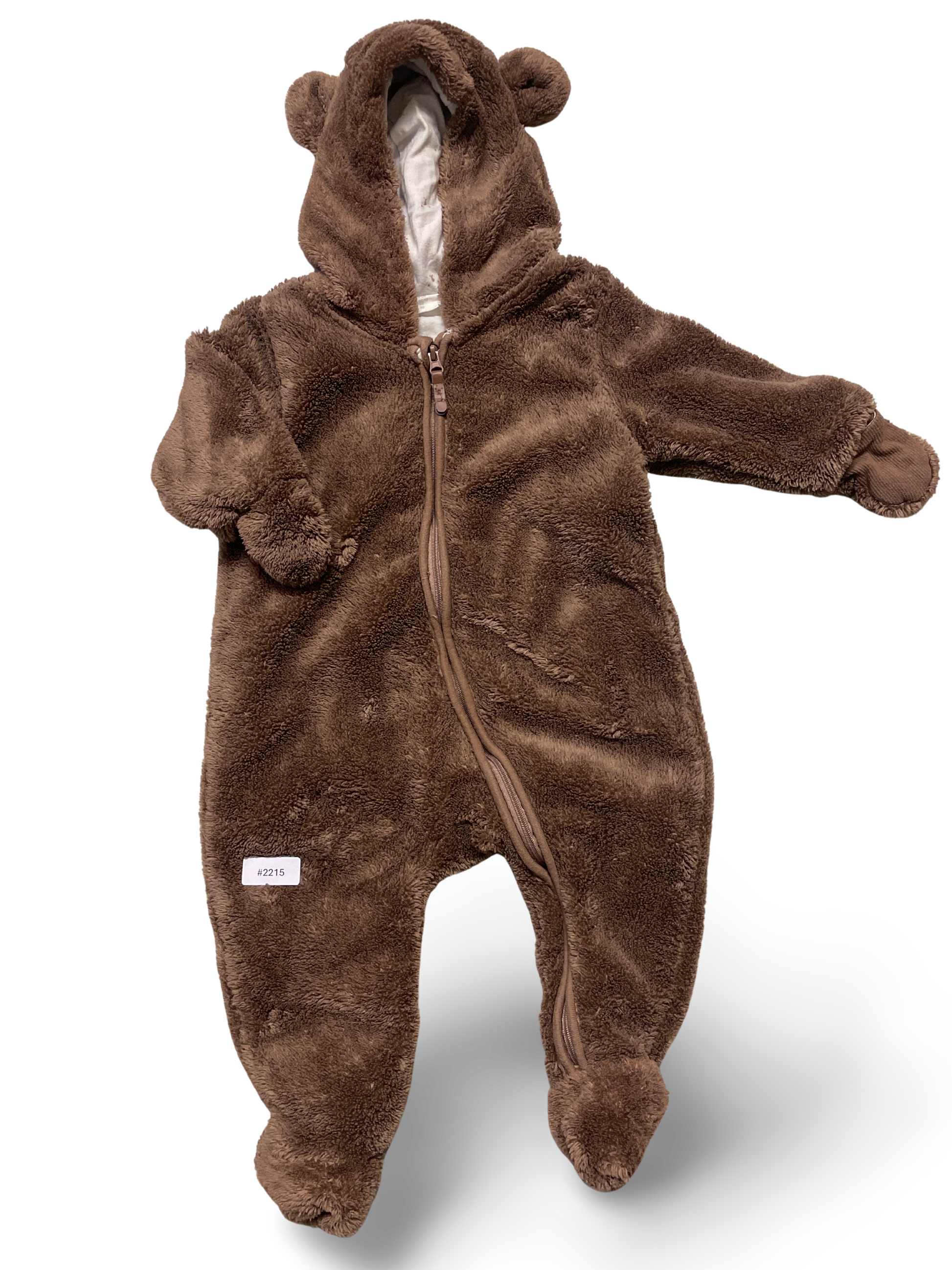 Brauner Plüschstrampler mit Kapuze und Füsschen - Gr. 68