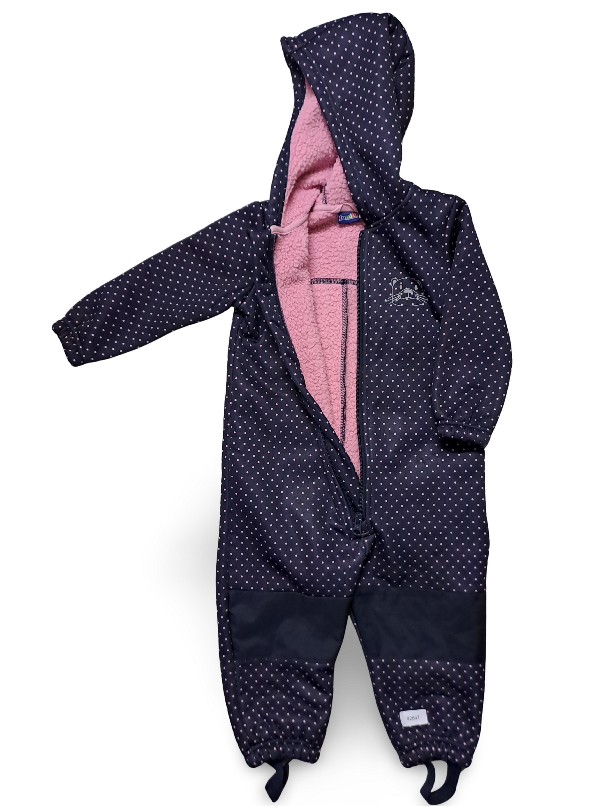 Gepunkteter Winterstrampler mit Kapuze und Fleecefutter - Gr. 86