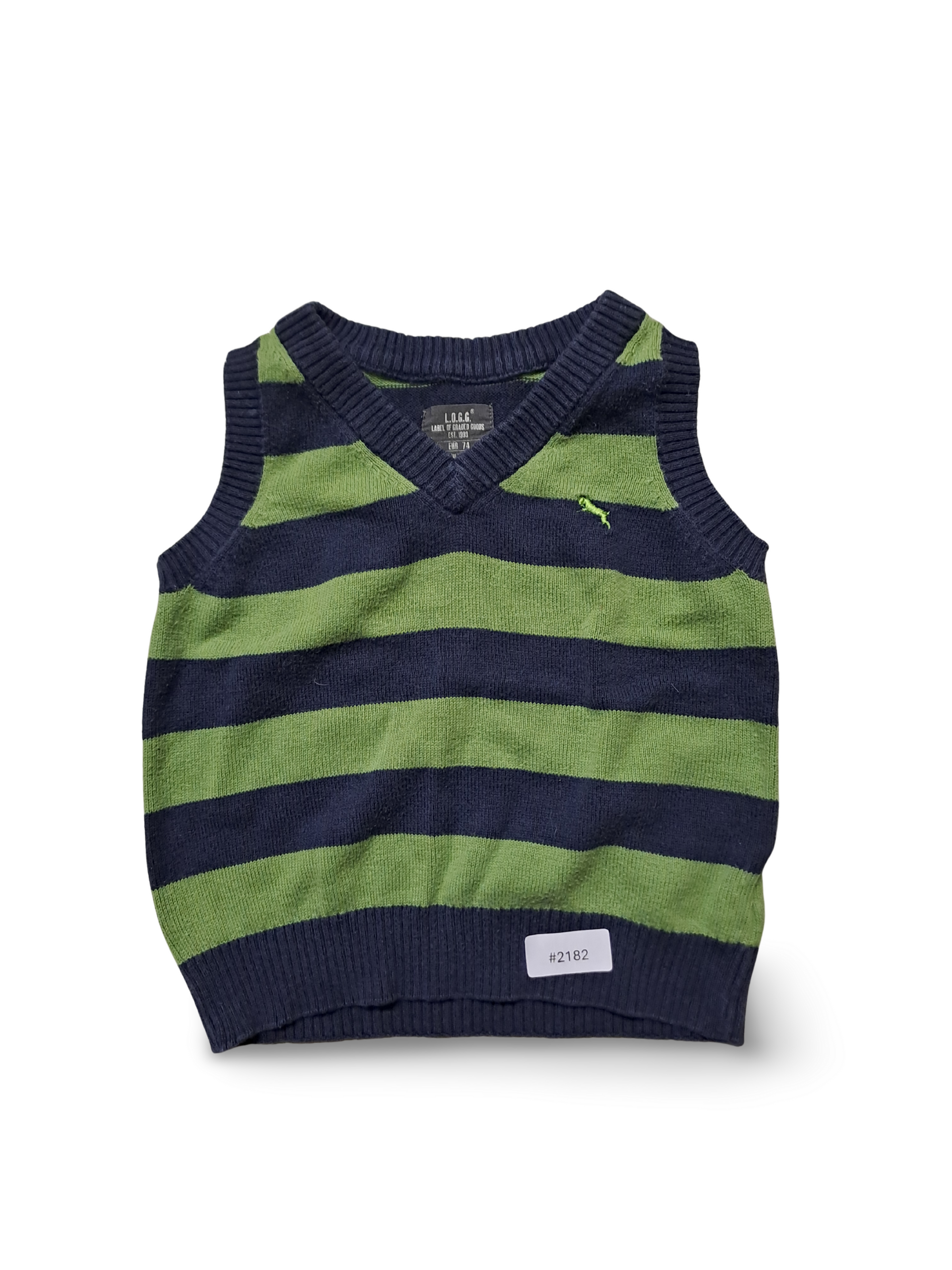 Weicher, gestreifter Pullunder in lebendigem Grün und tiefem Blau, ideal für verspielte Tage. Er verbindet angenehmen Tragekomfort mit charmantem, kindgerechtem Stil und kann vielseitig kombiniert werden.