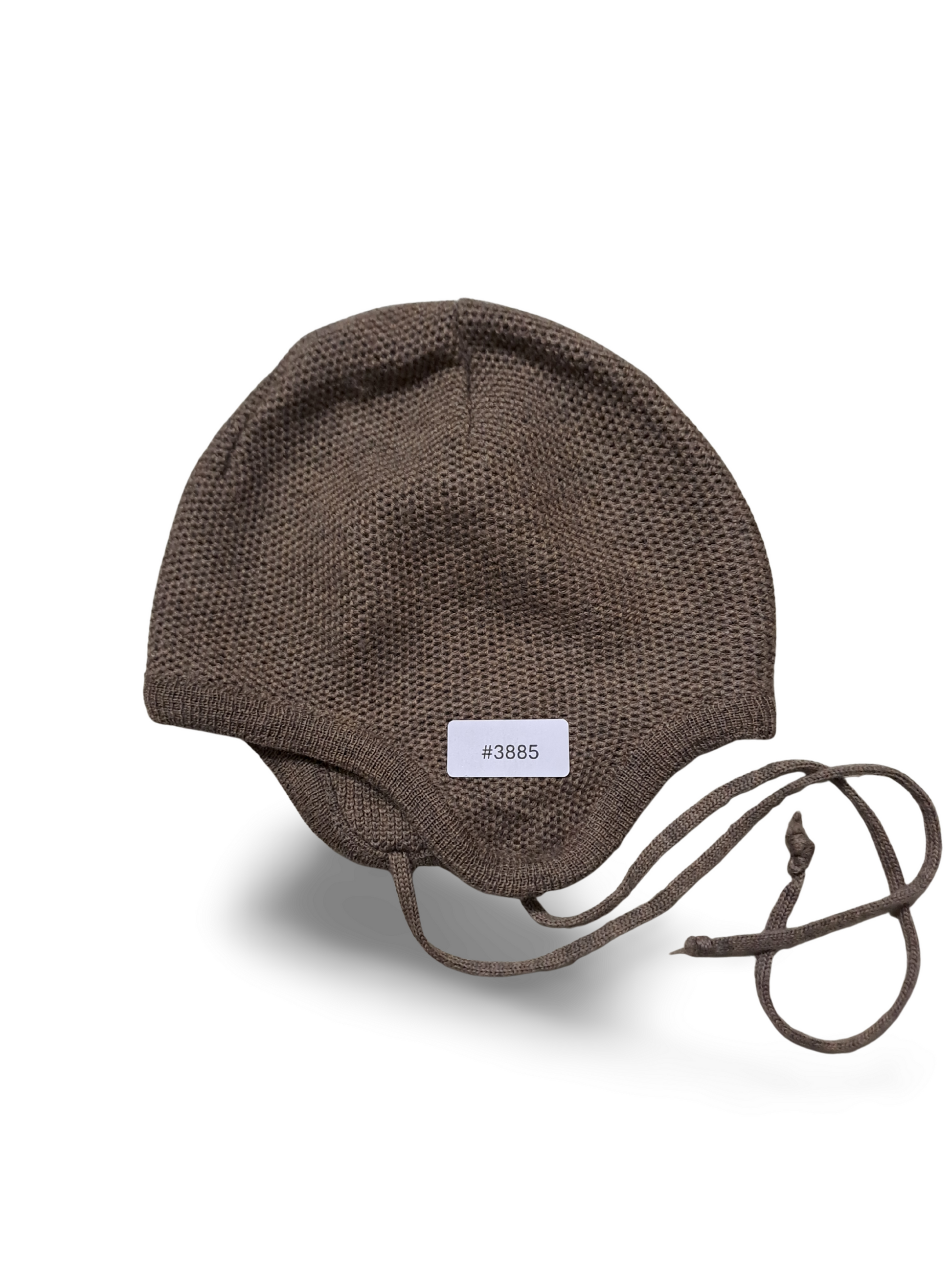 Charmante Babymütze in warmem Braun, sehr weich und mit liebevollen Details gearbeitet. Sie umschliesst zart den Kopf und vermittelt Geborgenheit und Komfort bei jedem Ausflug.