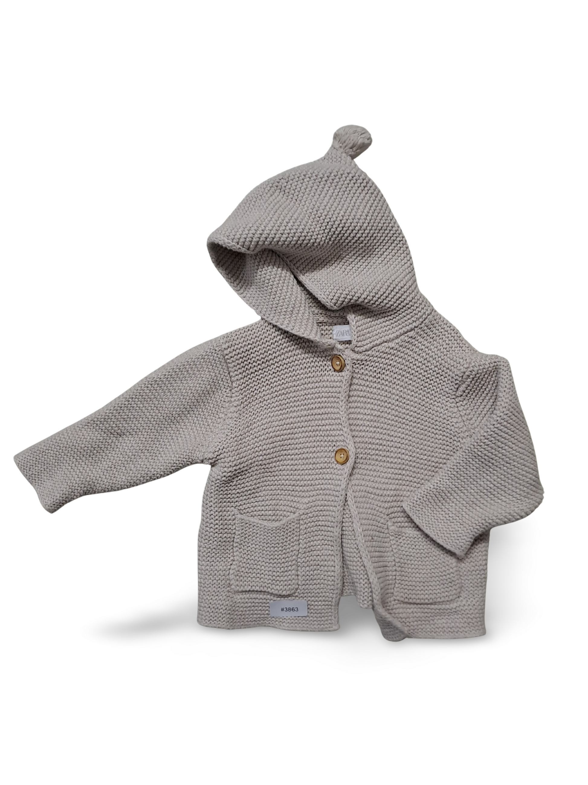 Gestrickte Kapuzenjacke mit Holzknöpfen - Gr. 68
