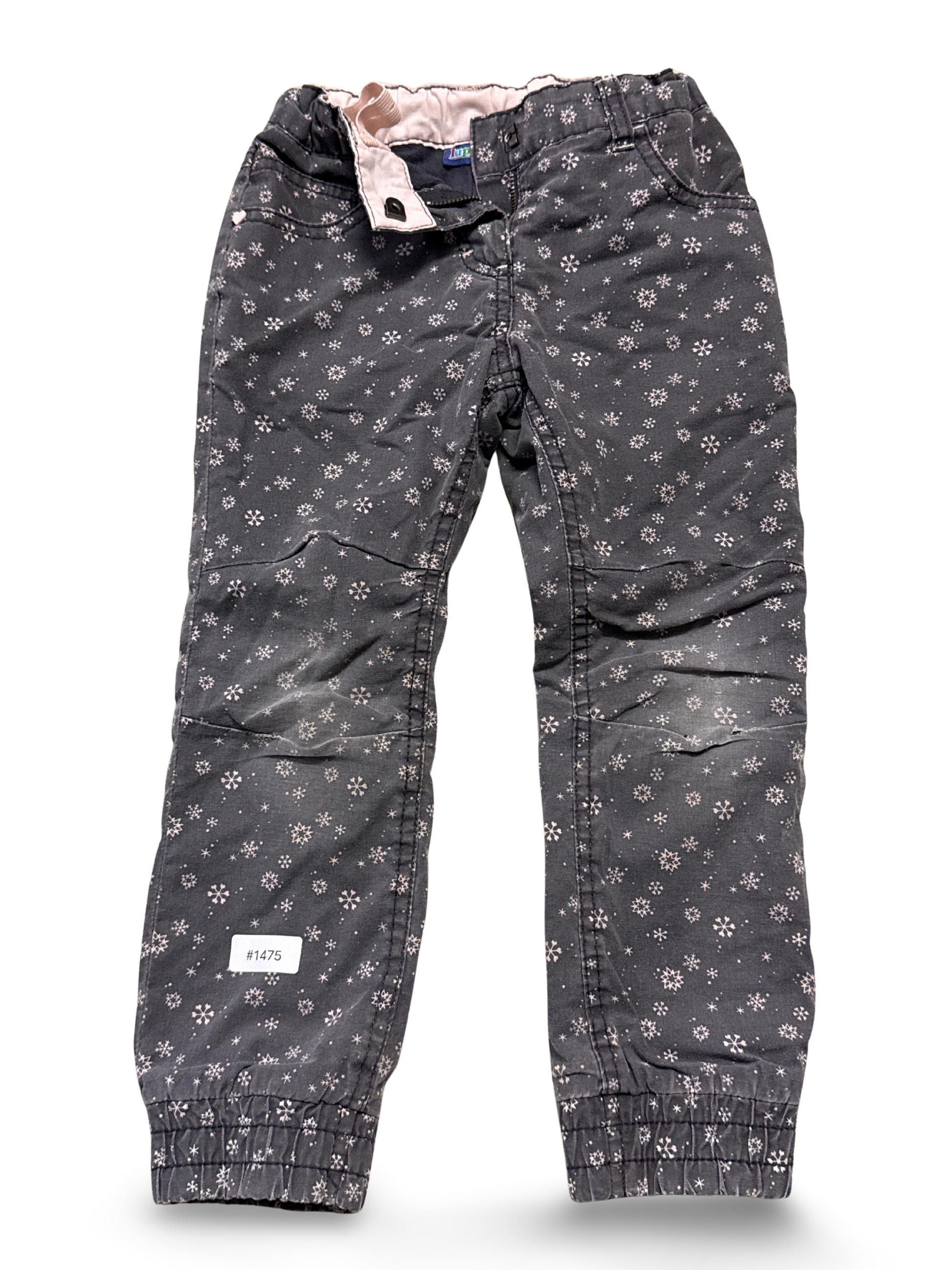 Mädchenhose mit Schneeflockenprint, elastischem Bund, verstellbarem Taillenband und gefüttertem Bundabschluss