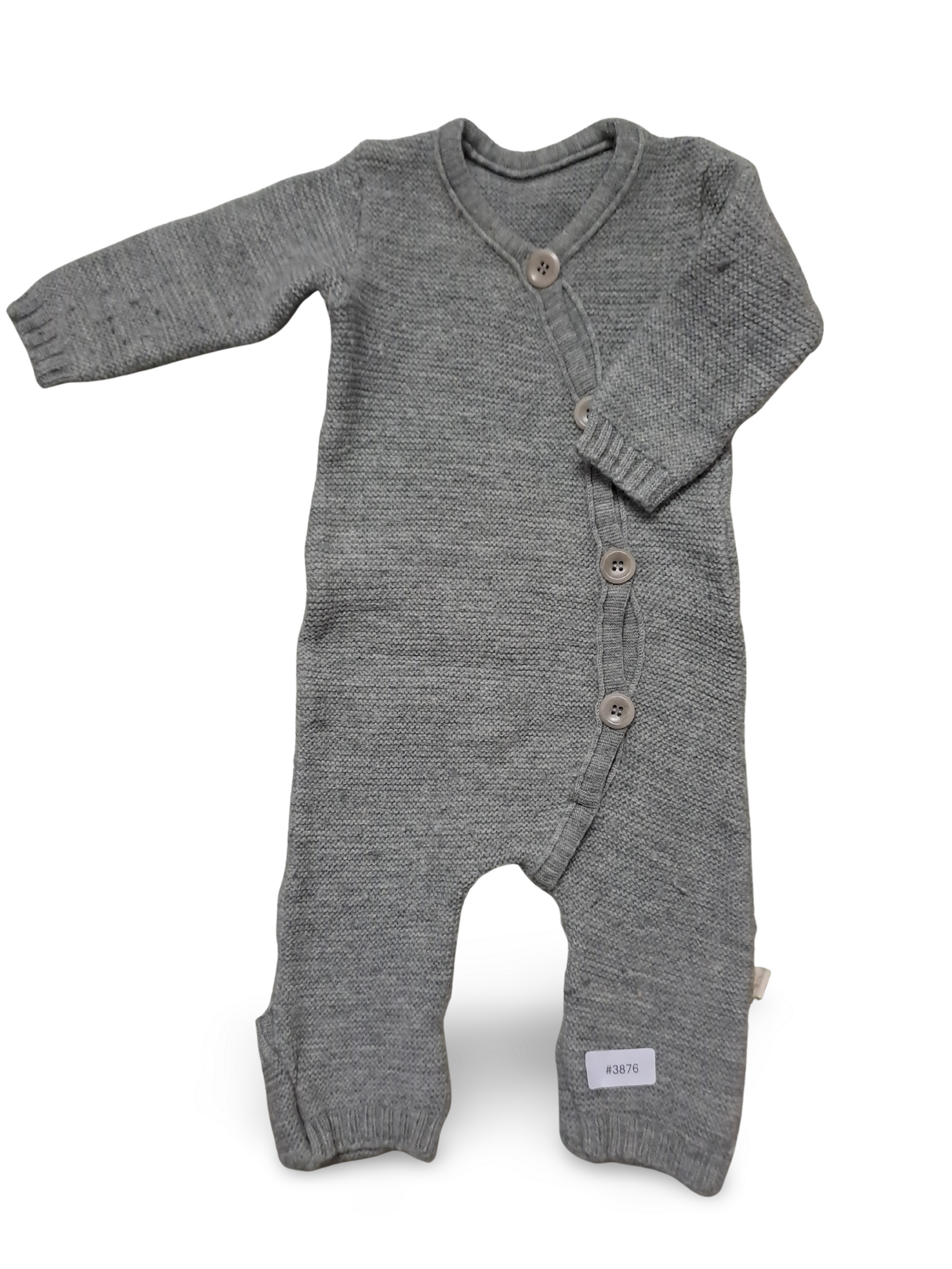 Grau gestrickter Strampler mit Knopfleiste - Gr. 62