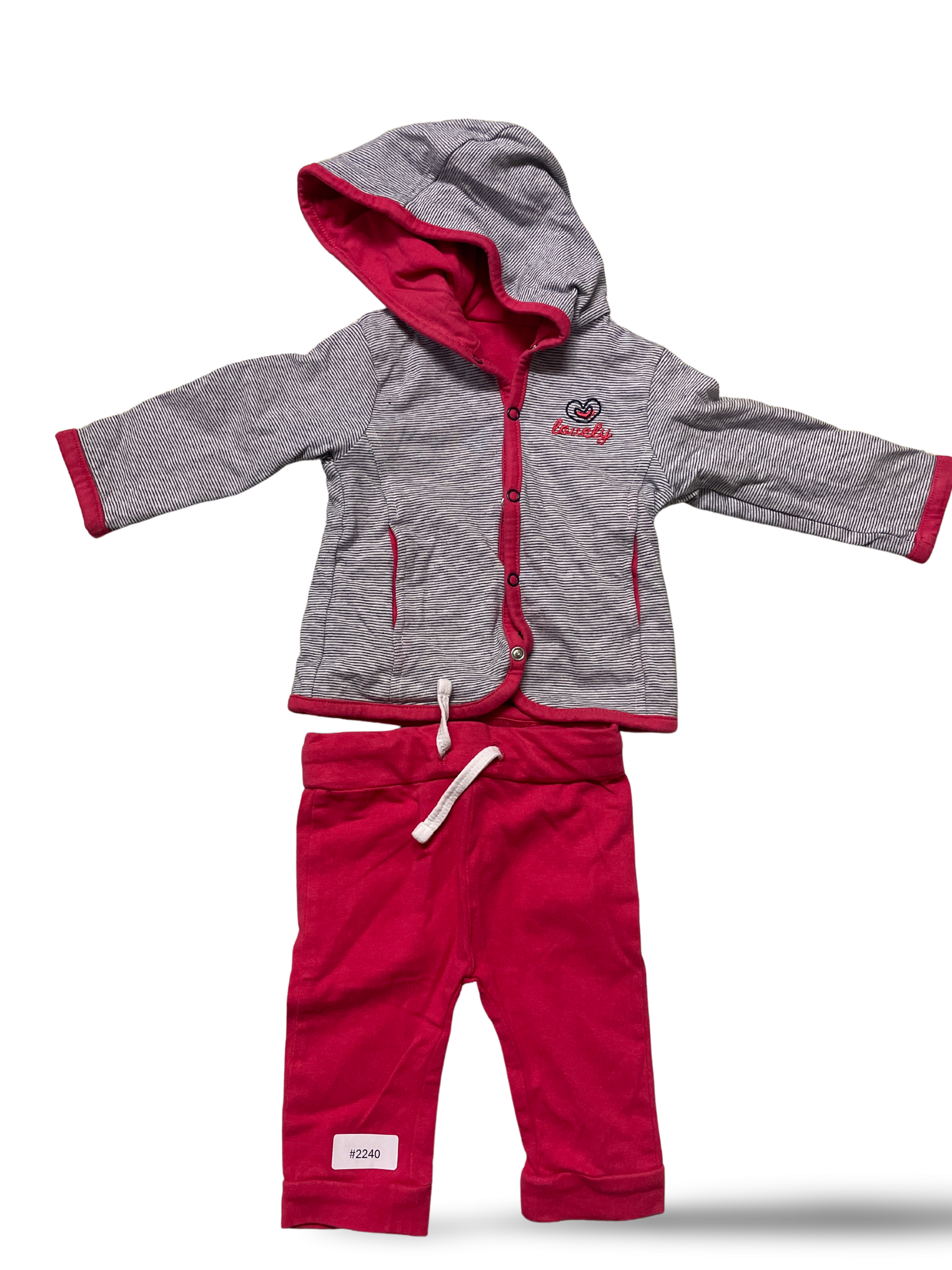 Grau-weiss gestreifte Kapuzenjacke mit rosa Jogginghose - Gr. 62