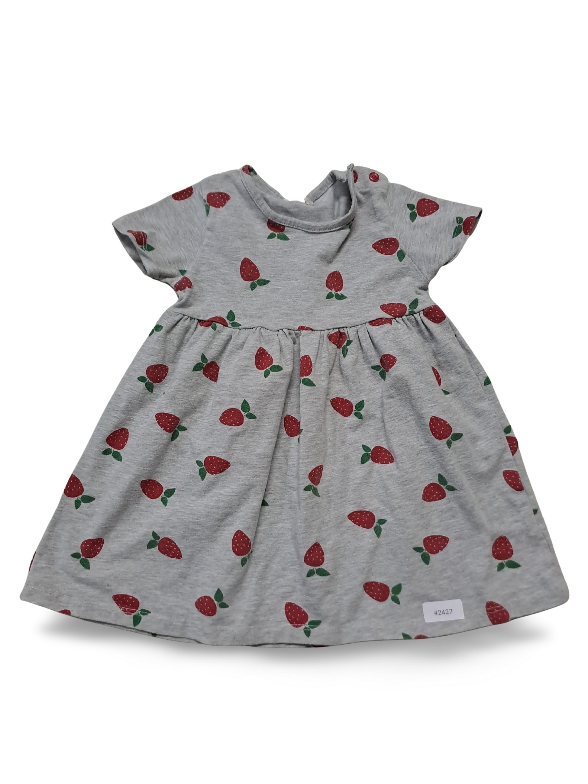 Graues Kleid mit Erdbeerprint - Gr. 92
