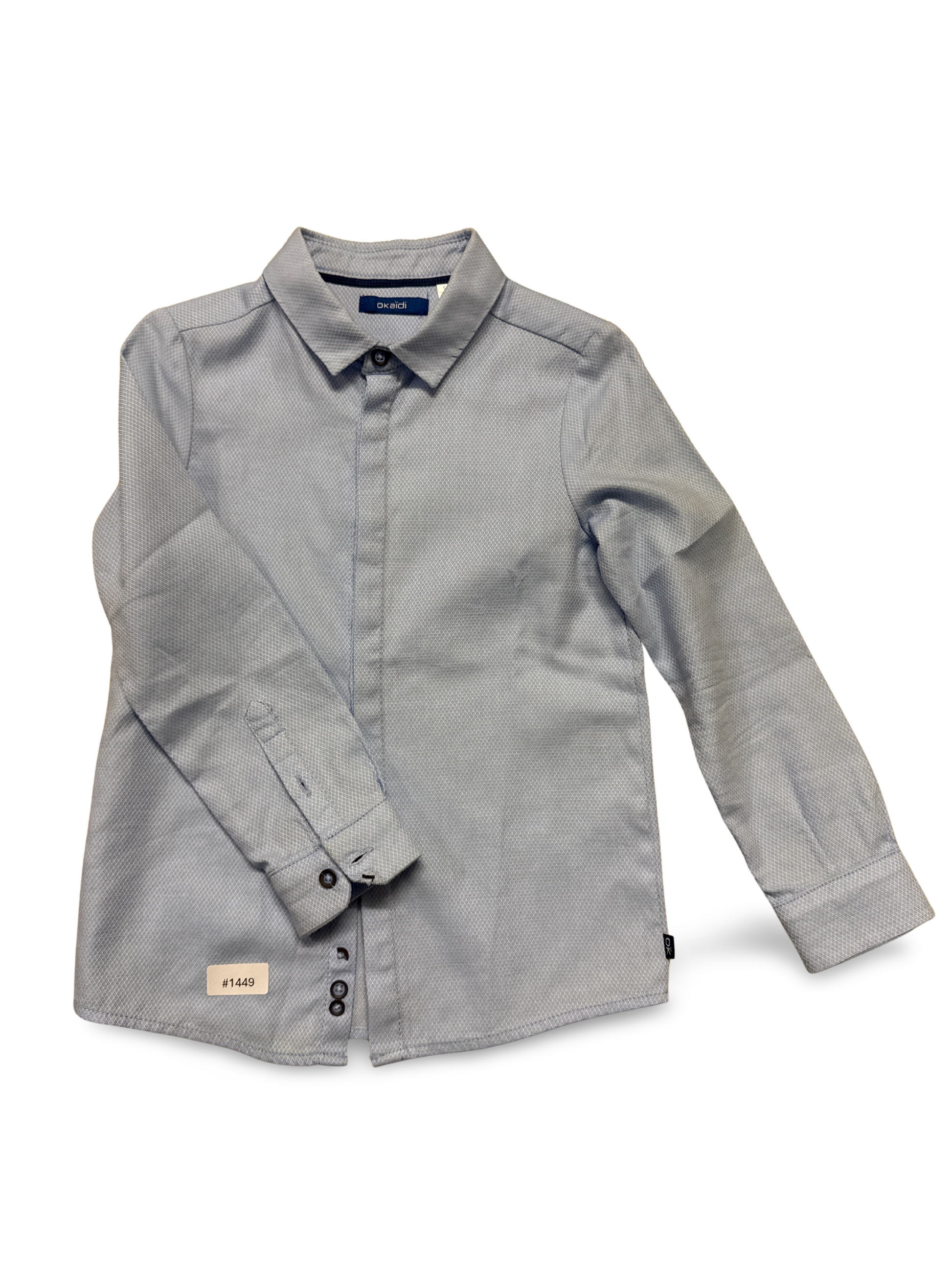 Langarmhemd für Kinder mit Kragen und Knopfleiste. Hellblau. Grösse 110. Stilvoll und lässig, geeignet für Alltag und festliche Anlässe.