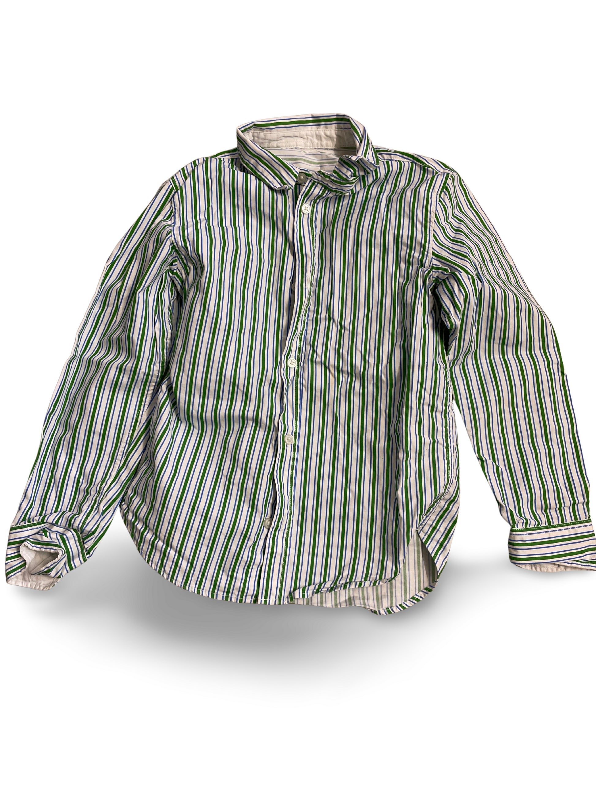 Klassisches Langarmhemd mit senkrechten Streifen in Weiss, Grün und Blau. Mit klassischem Kragen und durchgehender Knopfleiste – vielseitig kombinierbar für legere bis halbformelle Looks.