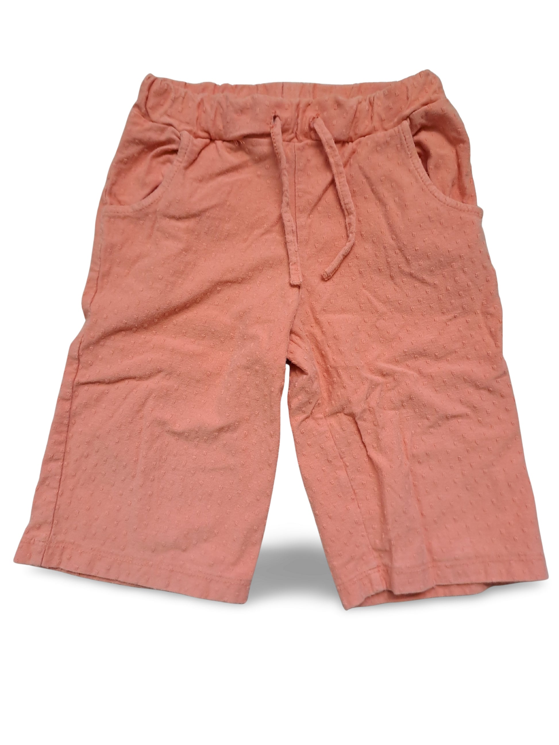 Bequeme, knielange Shorts in warmem Korallrosa mit dezenter Punktstruktur im Stoff. Elastischer Bund mit Tunnelzug und seitliche Taschen bieten praktischen Tragekomfort.