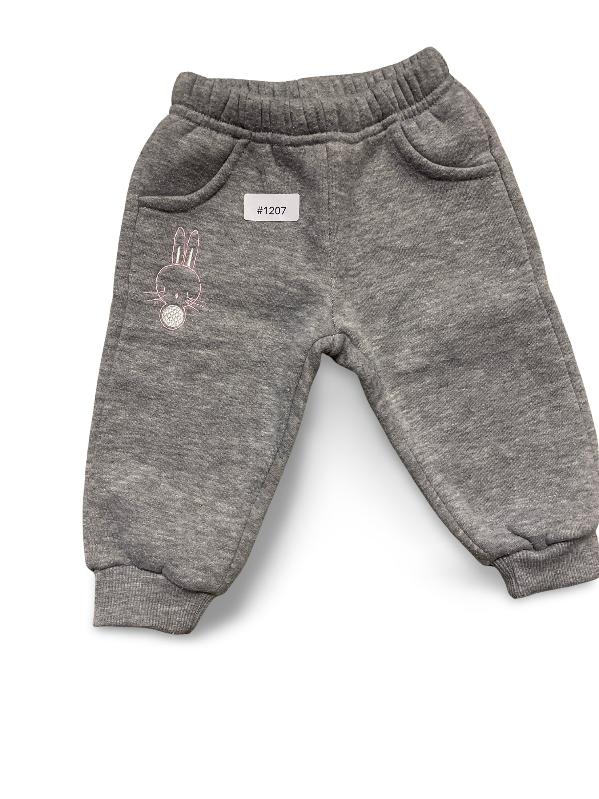 Gemütliche graue Hose mit Hasenmotiv und Taschen.