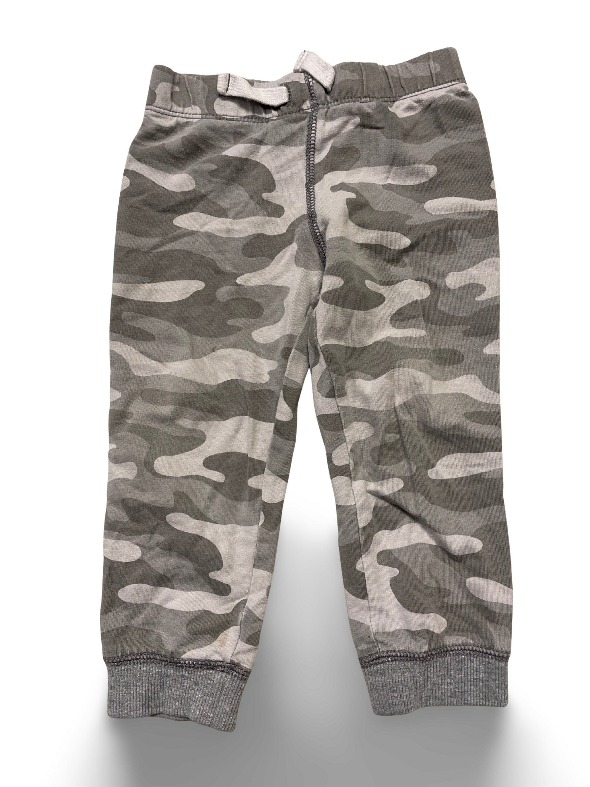 Graue Kinder-Jogginghose im Camouflage-Design mit elastischem Bund und praktischem Kordelzug. Weiche Baumwollmischung und gerippte Beinabschlüsse bieten angenehmen Tragekomfort. Vielseitig kombinierbar für Alltag und Spiel.