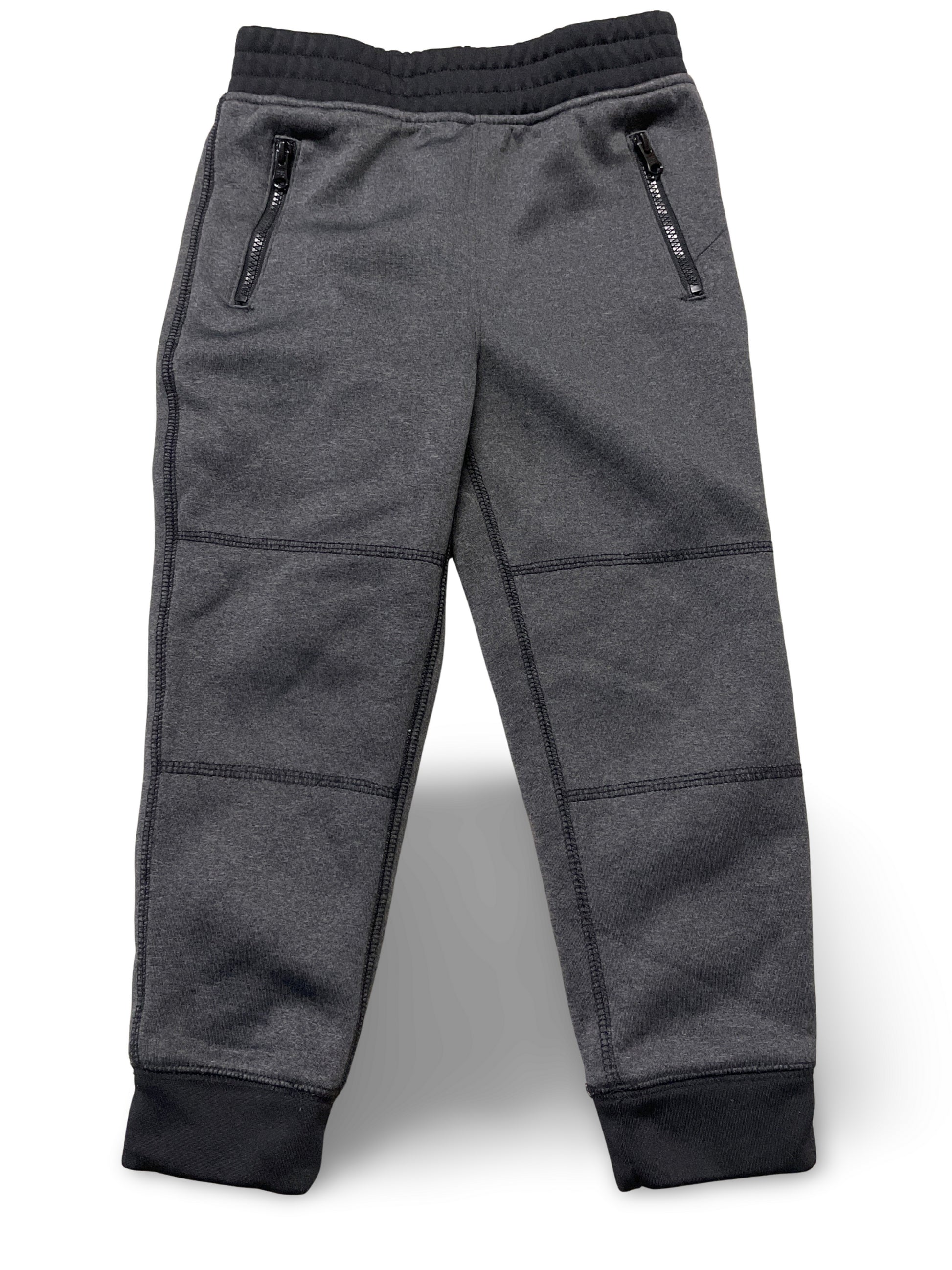 Dunkelgraue Jogginghose aus weichem Sweatstoff mit elastischem Bund und seitlichen Reissverschlusstaschen. Sportliches Design mit kontrastierenden Bündchen und markanten Steppnähten – ideal für Alltag und Freizeit.