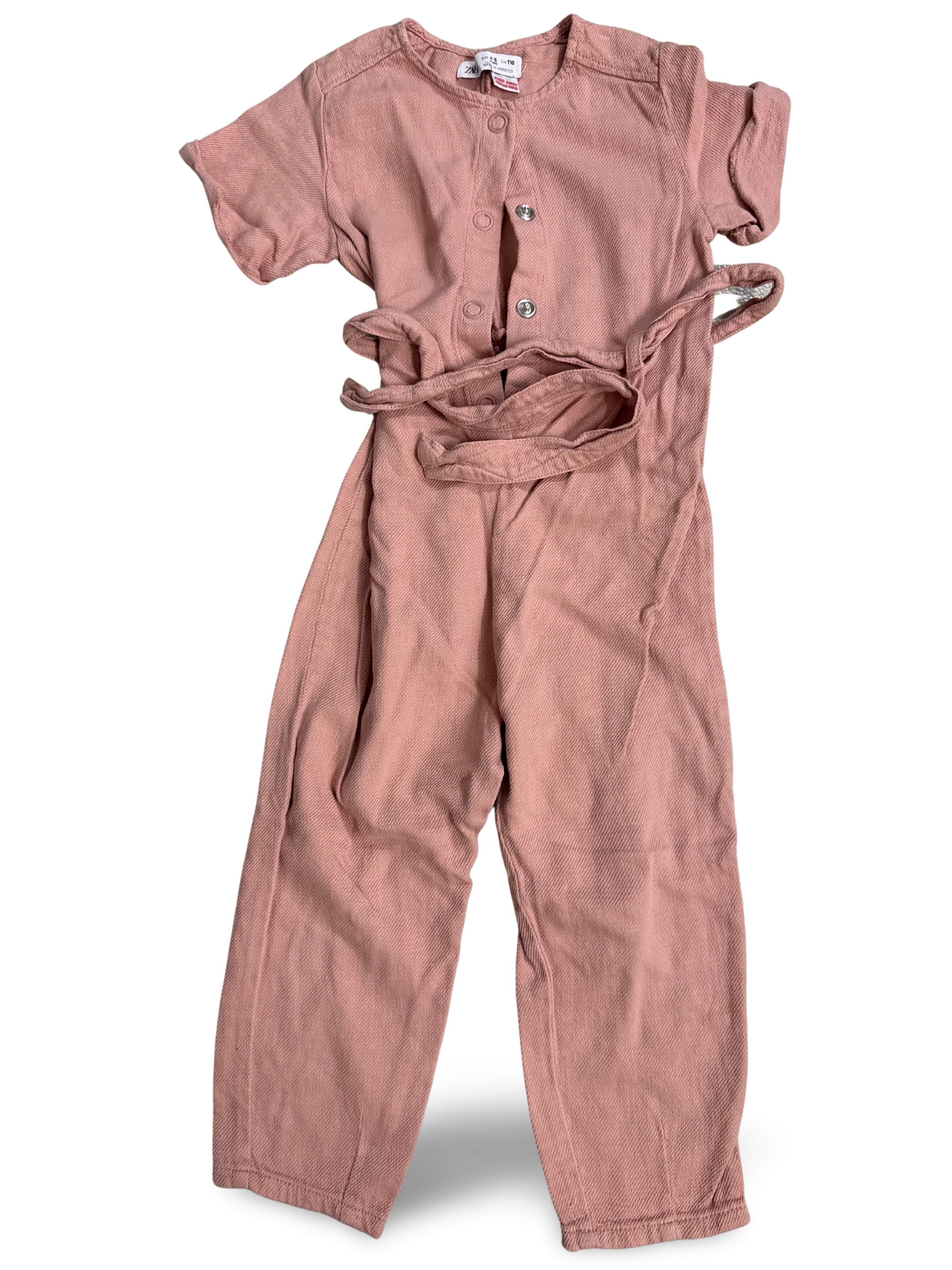 Altrosa Overall mit kurzen Ärmeln, Knopfleiste vorne und praktischem Taillenband zum Binden. Der leicht strukturierte Stoff und die langen Hosenbeine sorgen für eine lässige, vielseitige Optik, die sich gut kombinieren lässt.