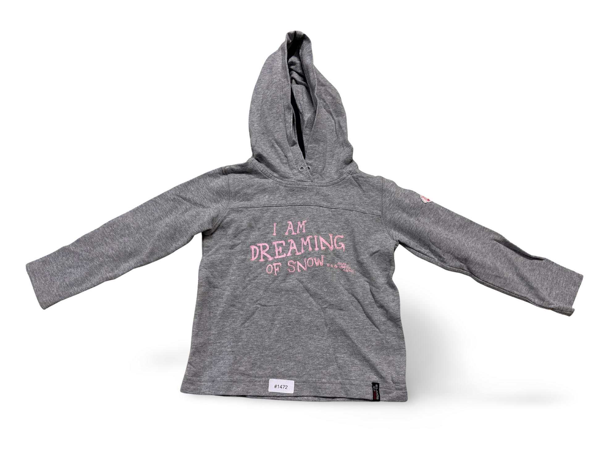 Grau melierter Kapuzenpullover mit Kapuze und längeren Ärmeln, pinker Aufdruck "I AM DREAMING OF SNOW" auf der Vorderseite, für Kinder