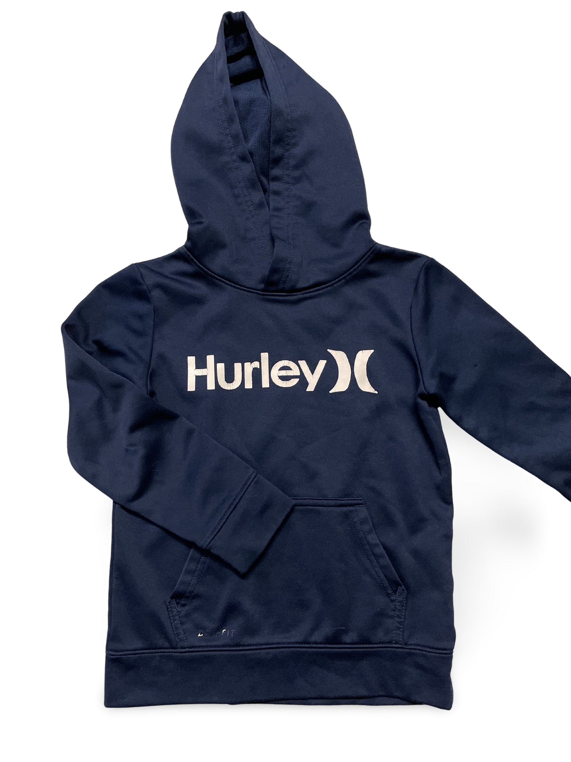 Dunkelblauer Hoodie mit auffälligem, weissem Hurley-Logo auf der Brust. Klassischer Schnitt mit Kapuze und Kängurutasche – ideal für Alltag und Freizeit.
