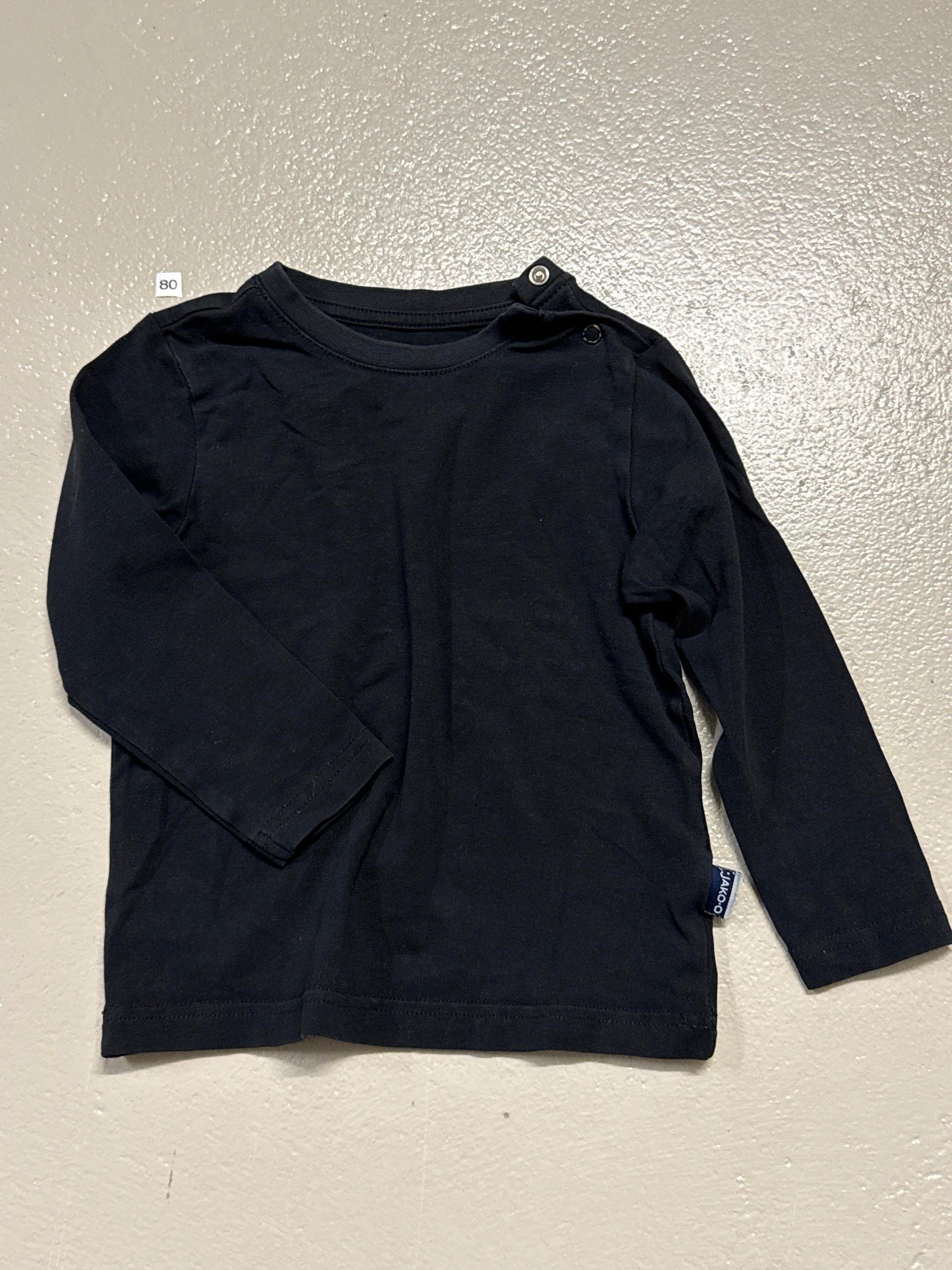 Ein schlichtes, schwarzes Langarmshirt mit Druckknöpfen an der Schulter.