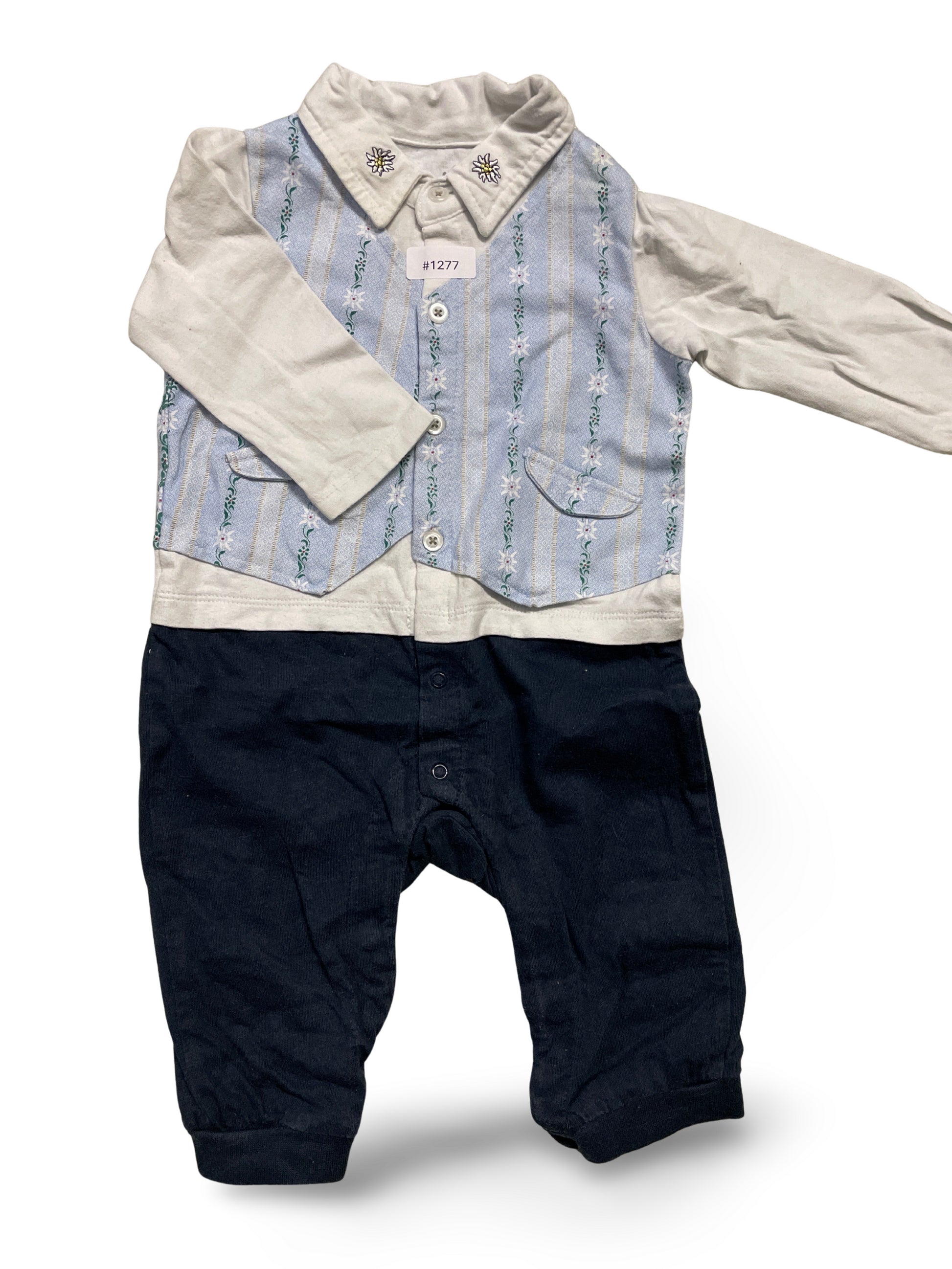 Ein süsser Overall mit Hemdkragen und Blumenstickerei, ideal für kleine Mädchen.
