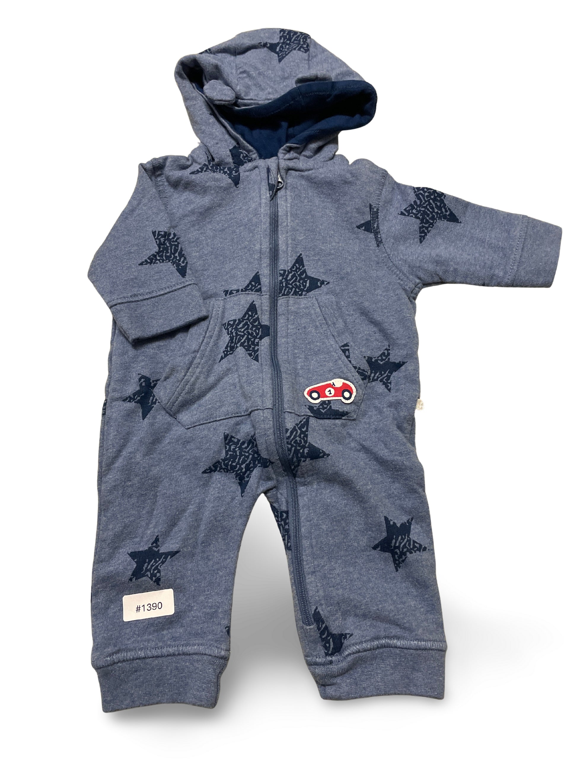 Ein bequemer Overall mit Kapuze und Sternen-Muster, ideal für kühle Tage.