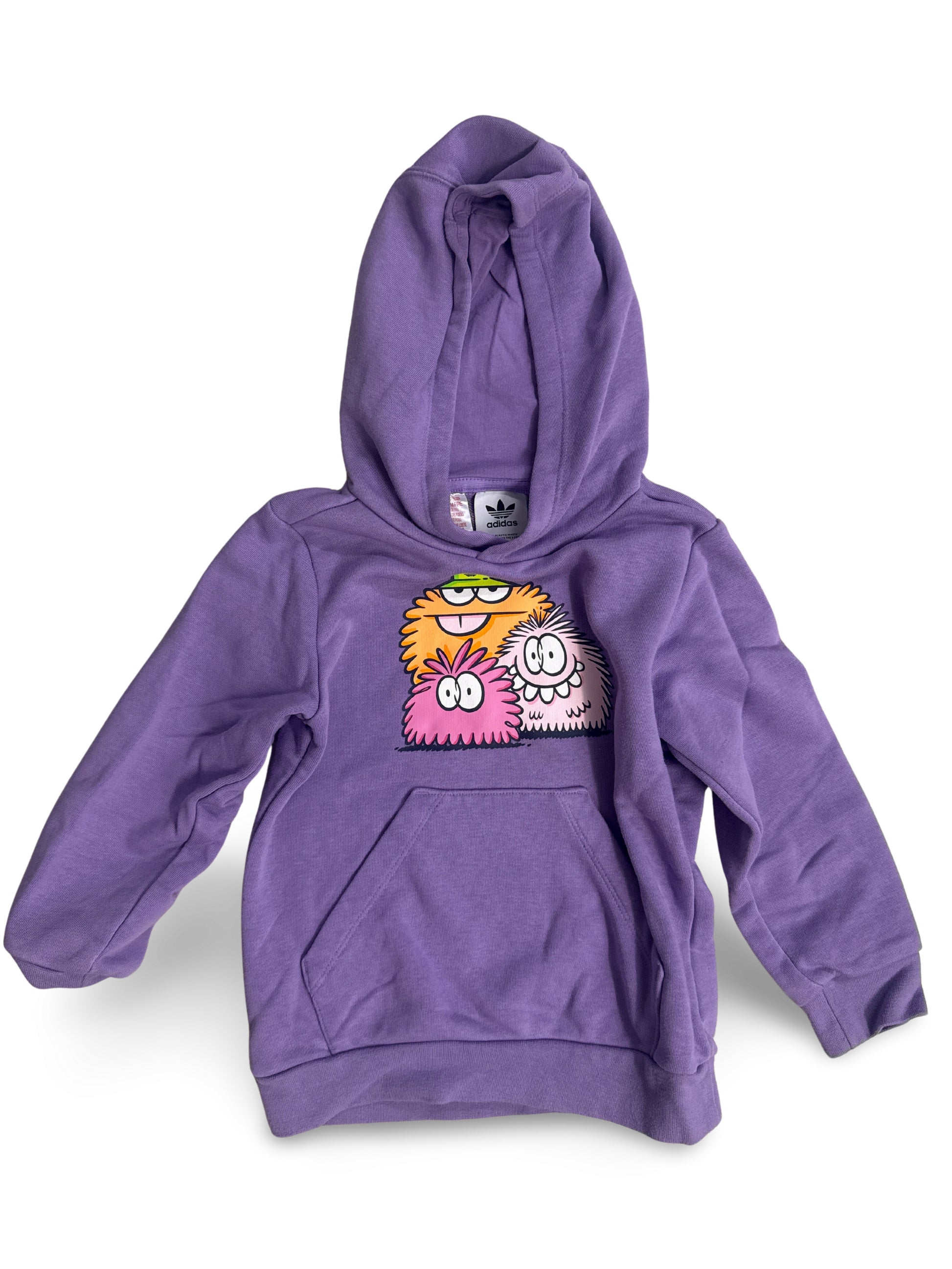 Lila Hoodie mit fröhlichem, buntem Monster-Print auf der Vorderseite. Mit Kapuze und Kängurutasche für einen lässigen Alltagslook. Ideal für entspannte Tage und coole Outfits.