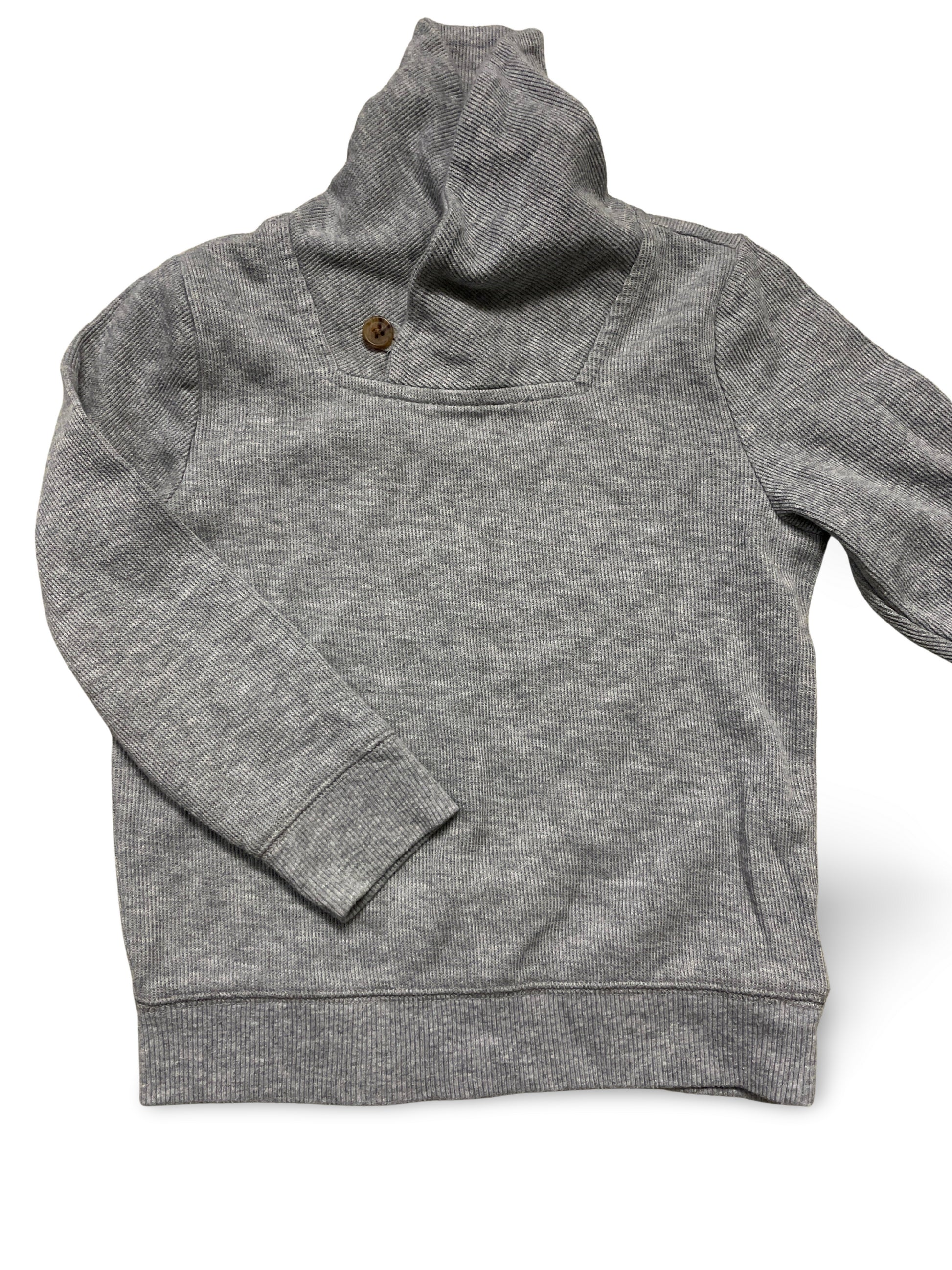 Grau meliertes Sweatshirt mit hochgeschlossener Kapuze und dekorativem Holzknopf als Blickfang. Gerippte Bündchen an Ärmeln und Saum sorgen für einen cleanen, lässigen Look. Vielseitiges Basic für den Alltag.