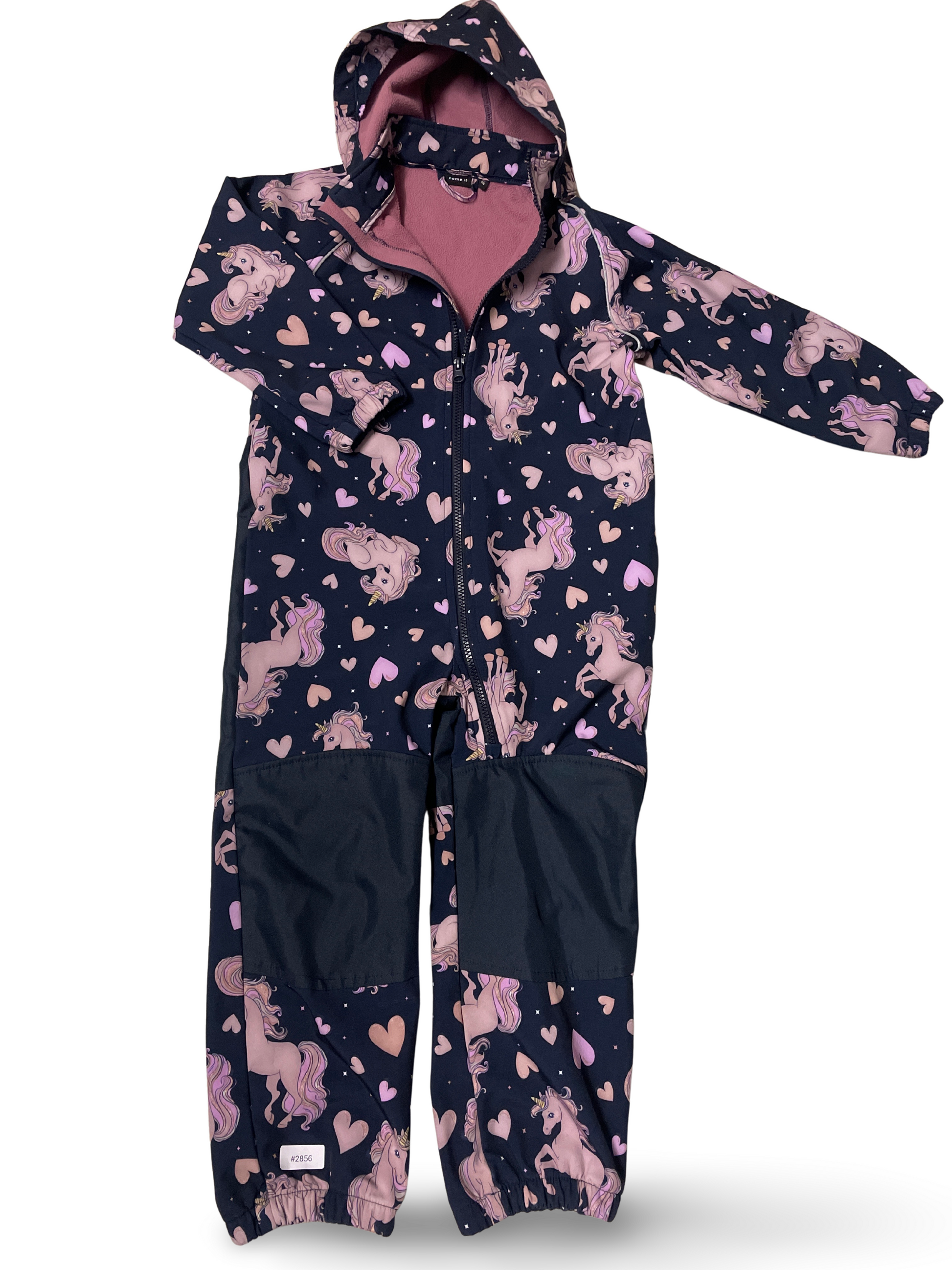 Niedlicher Kinder-Overall mit zauberhaftem Einhorn- und Herzmotiv auf dunkelblauem Grund. Die weiche, rosa Innenfütterung und die Kapuze sorgen für ein wohliges Tragegefühl; elastische Bündchen an Armen und Beinen sowie verstärkte Kniepartien bieten extra Schutz beim Spielen. Ein liebenswertes Lieblingsstück für kleine Entdeckerinnen.