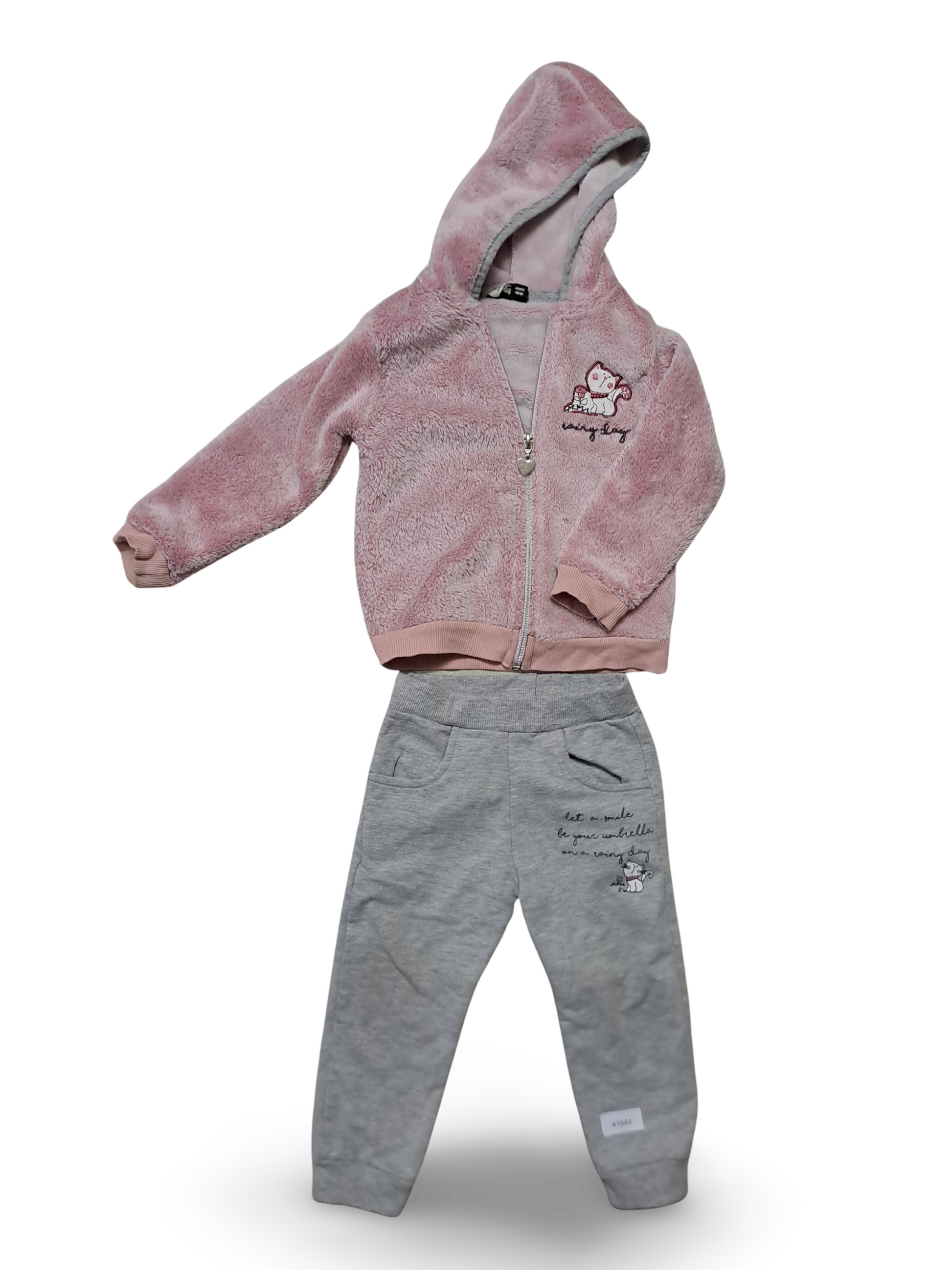 Rosa Flauschkapuzenjacke mit grauer Jogginghose - Gr. 92