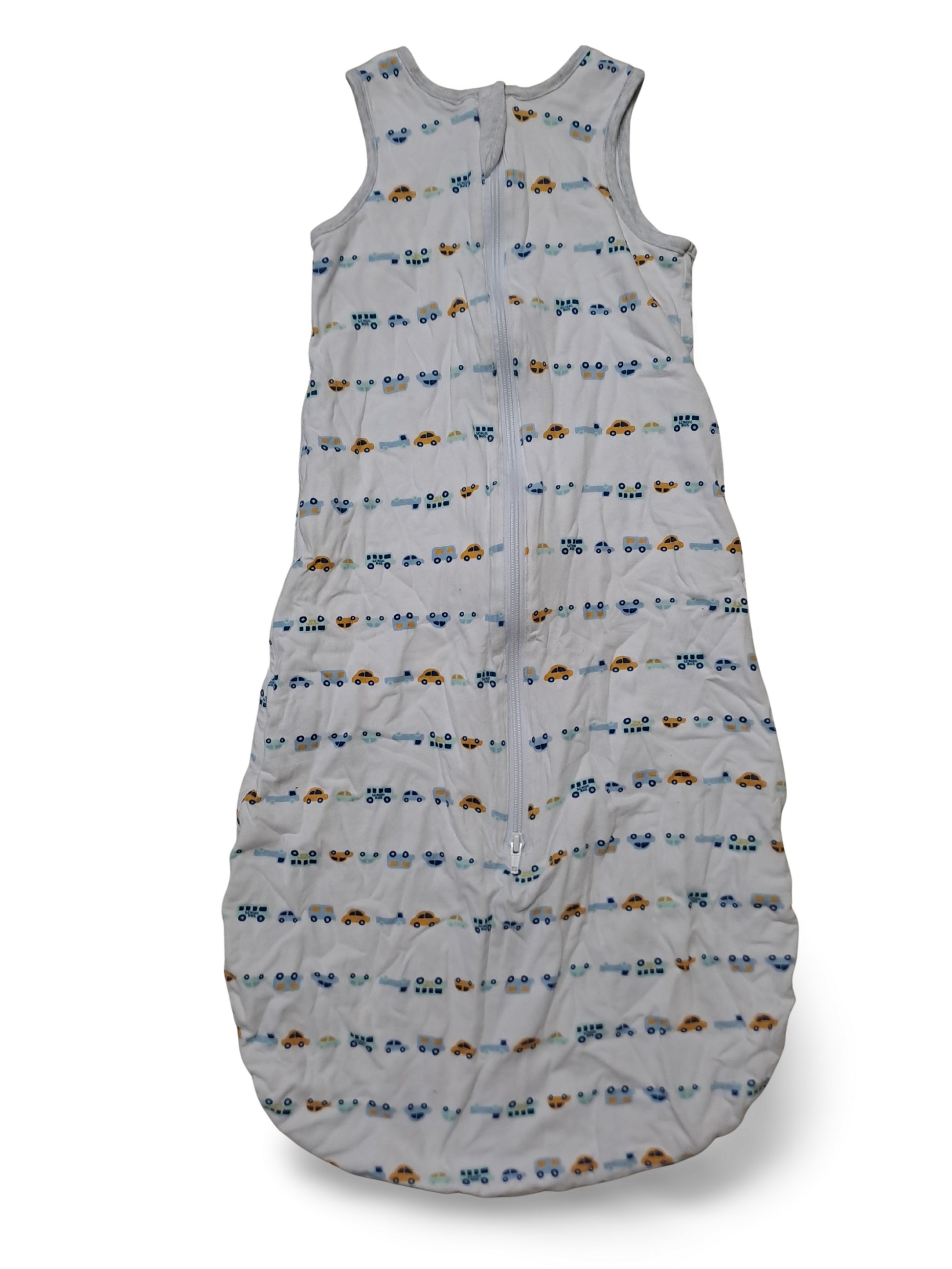 Ärmelloser Babyschlafsack mit durchgehendem Reissverschluss für einfaches An- und Ausziehen. Der weisse Schlafsack ist mit einem süssen Auto- und Fahrzeugmuster in Blau- und Gelbtönen bedruckt. Weicher, anschmiegsamer Stoff bietet angenehmen Schlafkomfort.