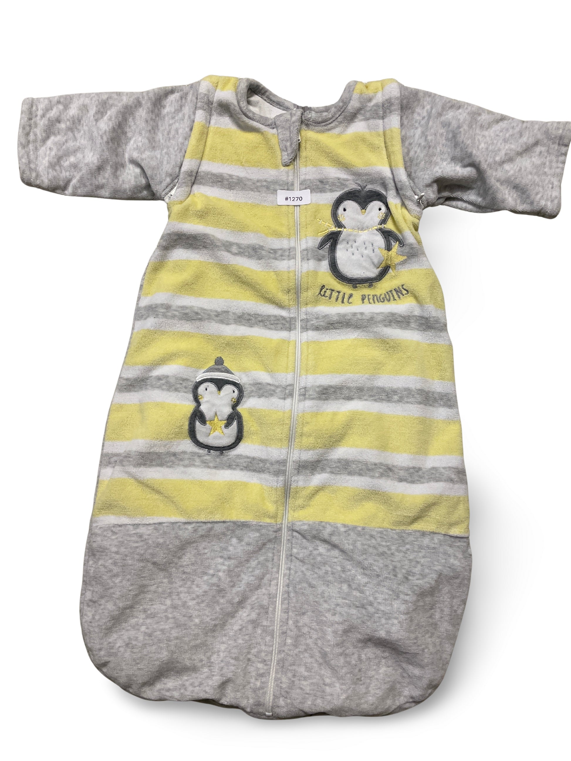 Weicher Schlafsack mit Pinguin-Motiv und Reißverschluss, ideal für Babys.