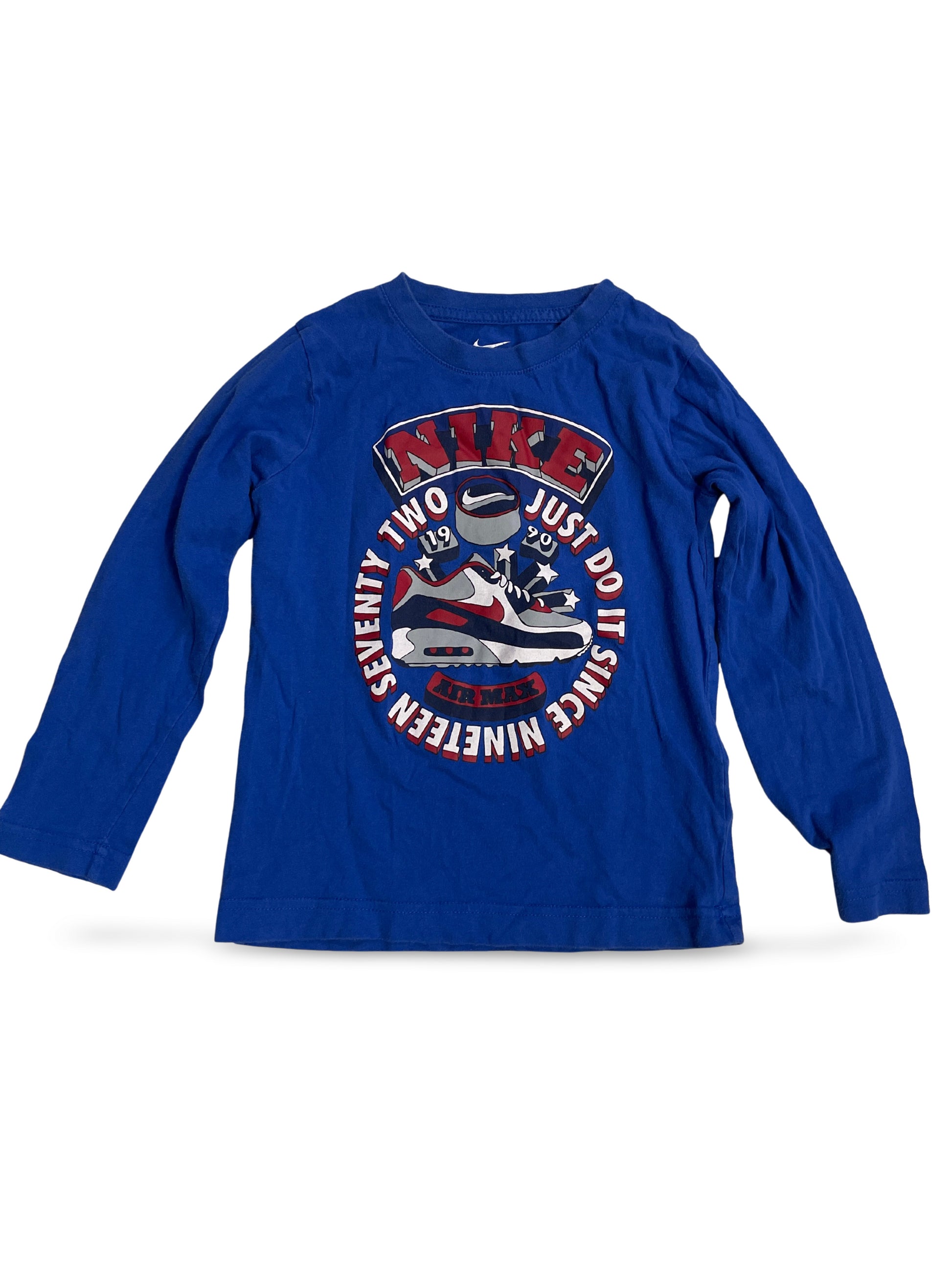 Knallblaues Langarmshirt mit grossflächigem Sneaker- und Slogan-Print auf der Vorderseite. Lässiges, sportliches Design, das sich vielseitig zu Jeans oder Jogginghosen kombinieren lässt. Auffälliger Nike-Print sorgt für einen markanten Akzent.