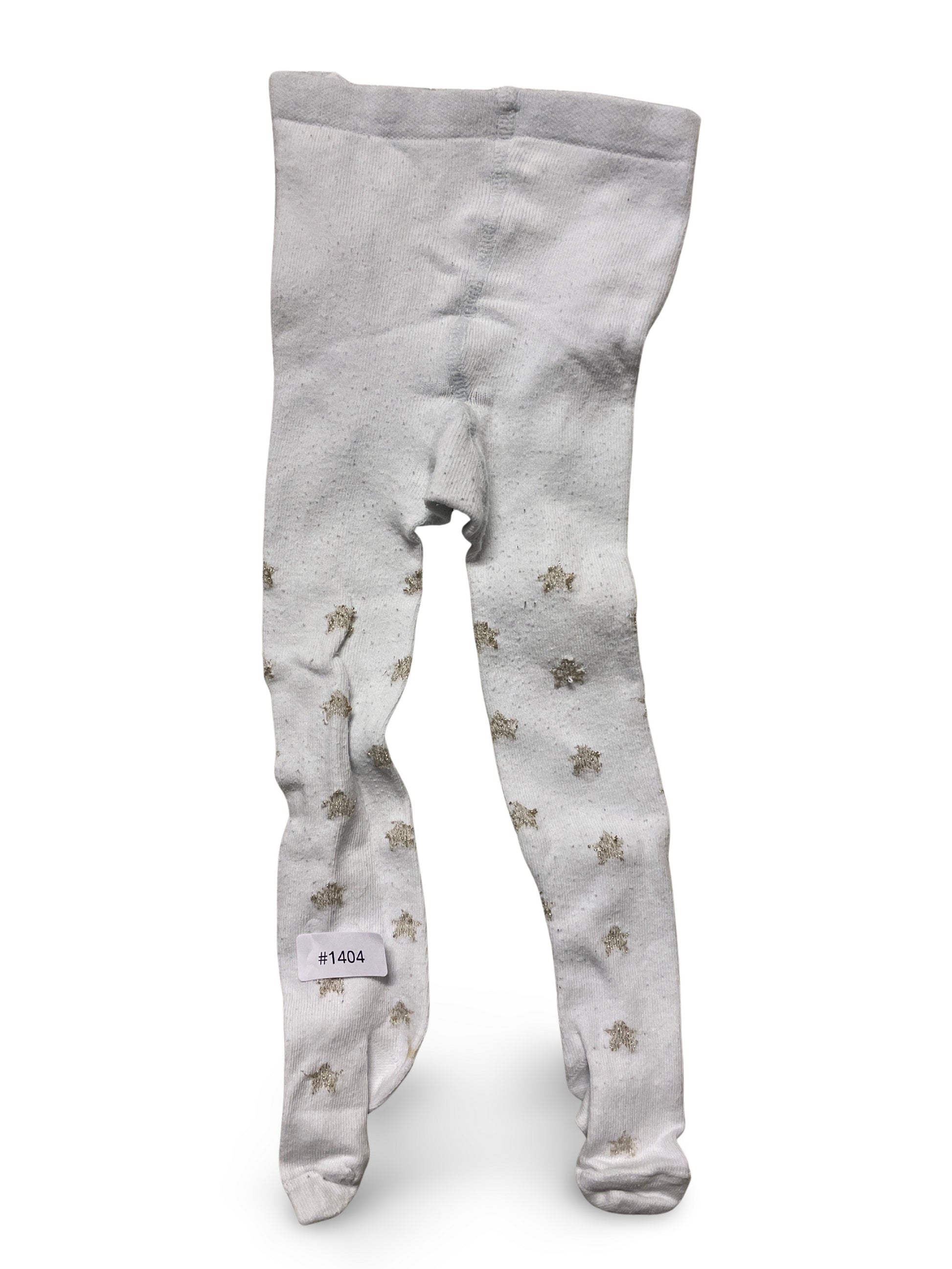 Weiße Strumpfhosen mit goldenen Sternen.