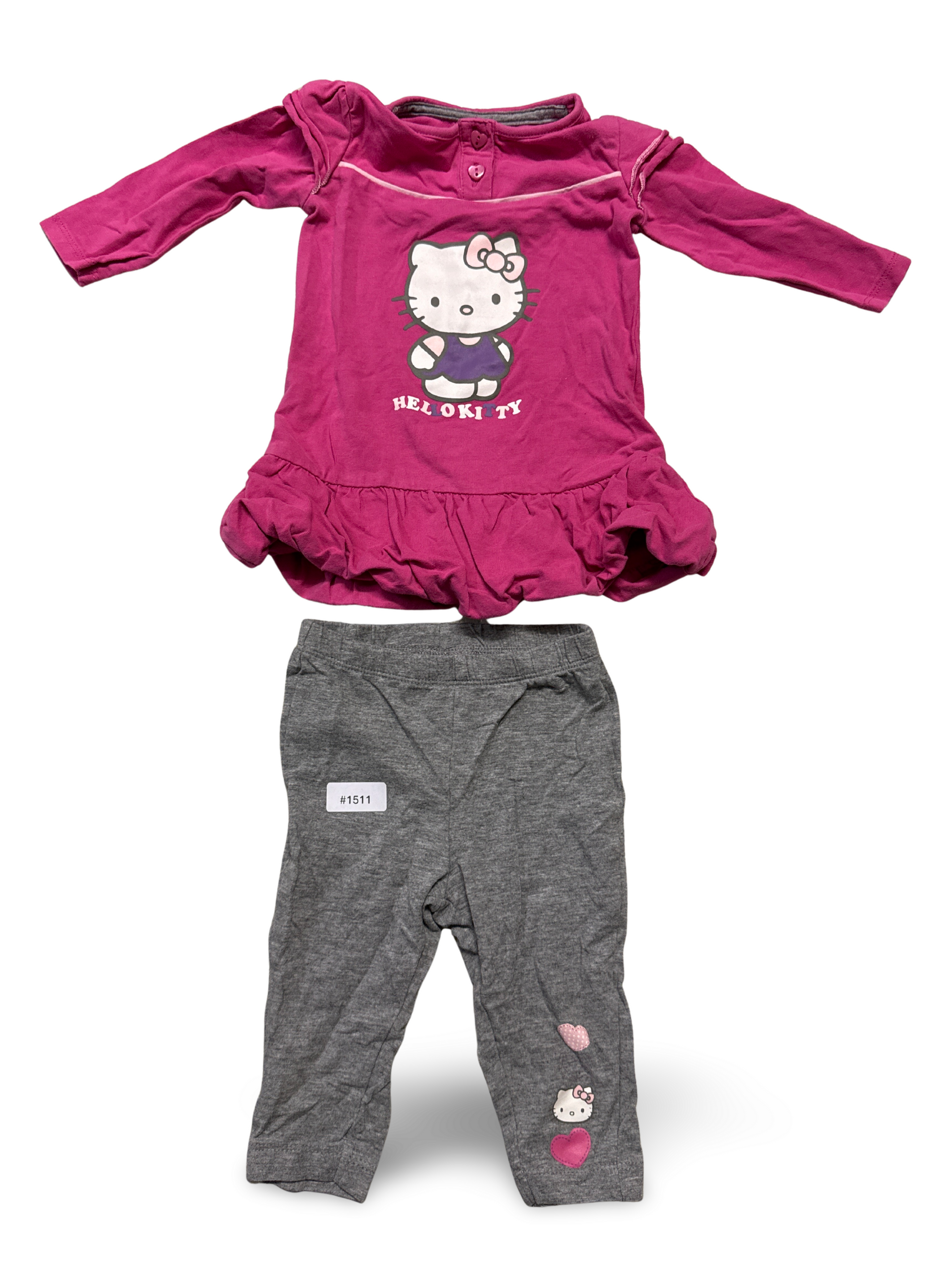Zweiteiliges Babyset mit Hello Kitty Motiv: langärmliges Kleid in Rosa und graue Leggings mit Herz-Applikationen, schön für Babys, Groesse 68